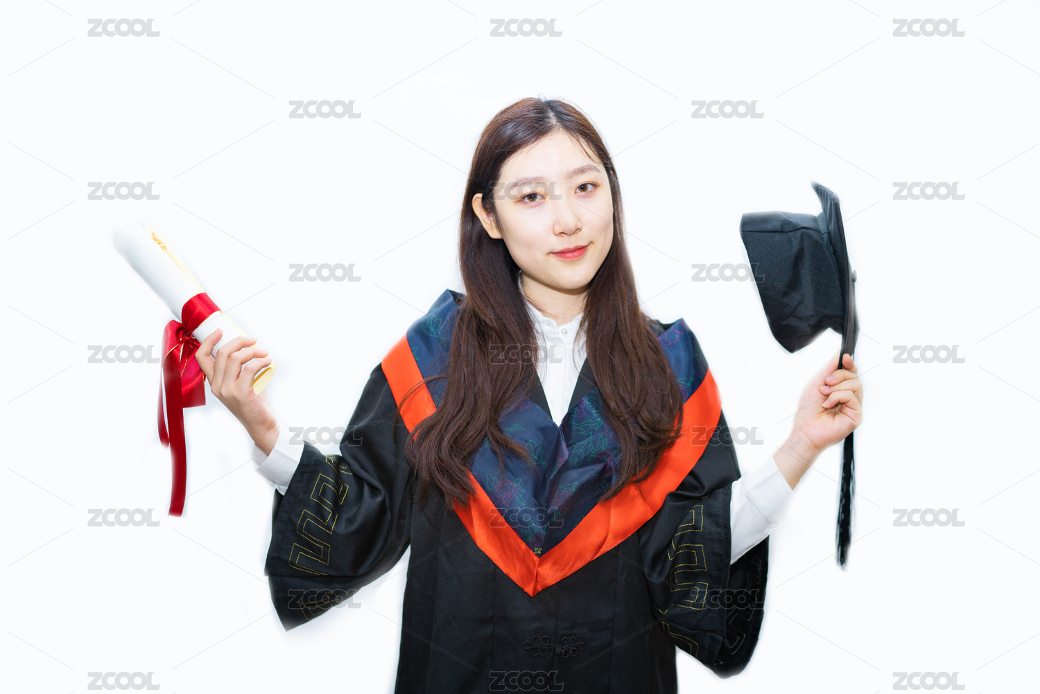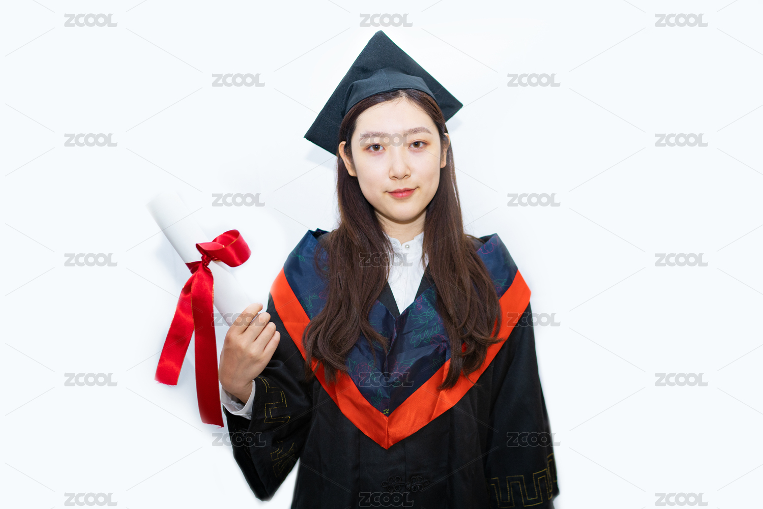 一個(gè)中國(guó)女畢業(yè)生穿著畢業(yè)服裝拿著證書象征著考證的成功與教育的結(jié)業(yè)成果