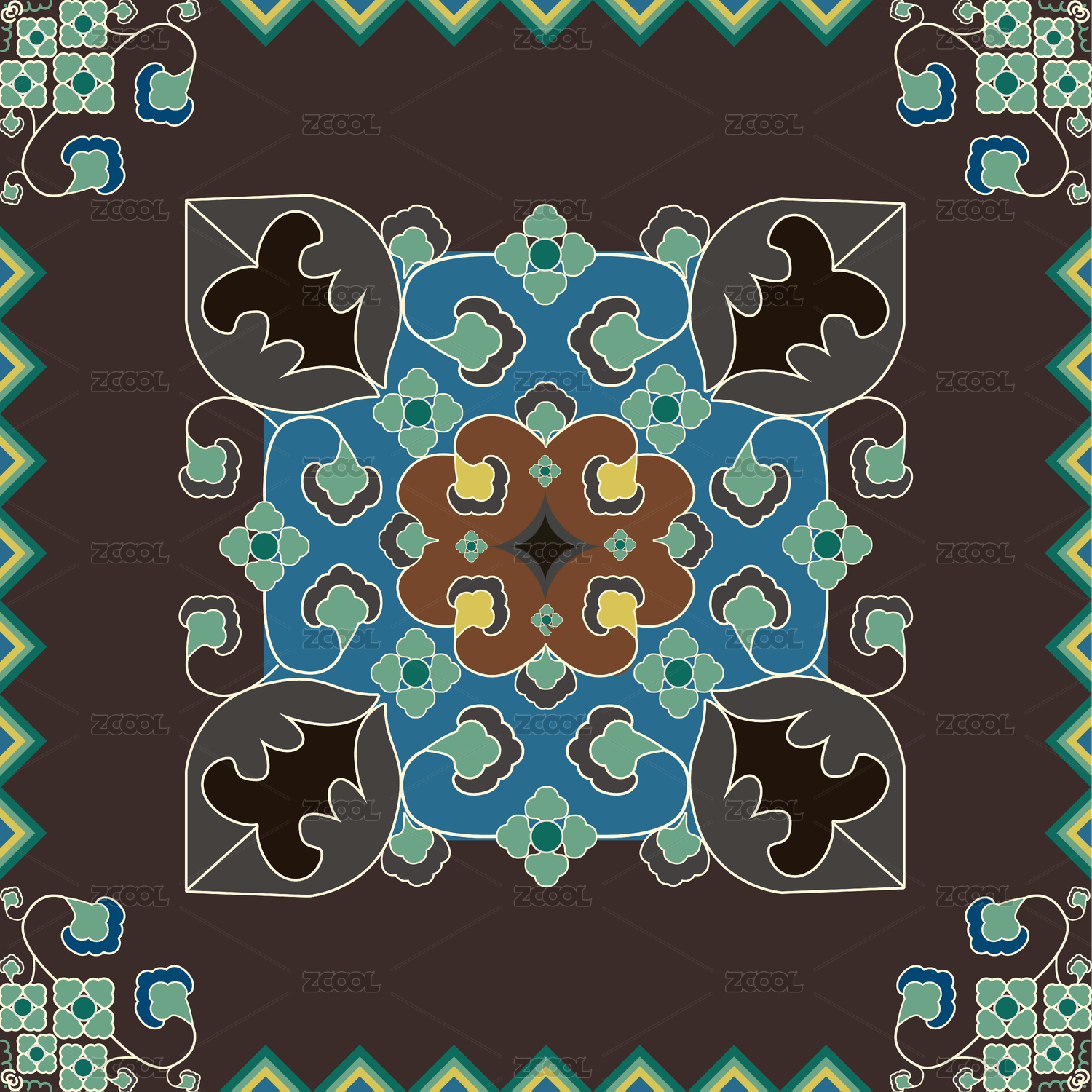 方形吉祥卷草紋樣