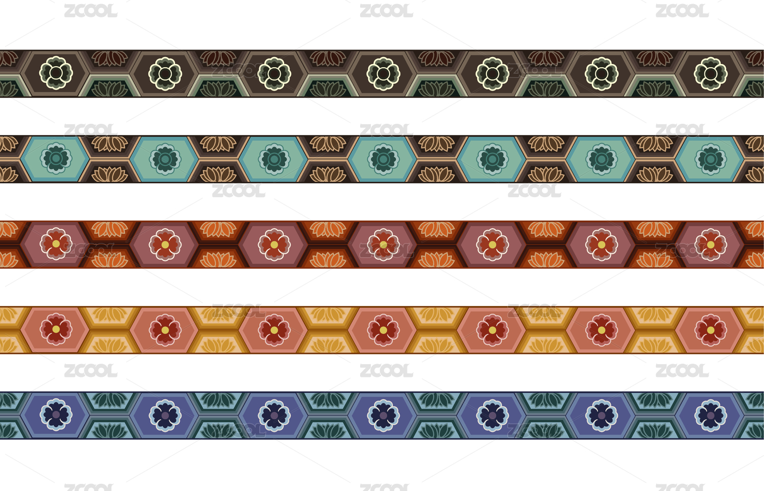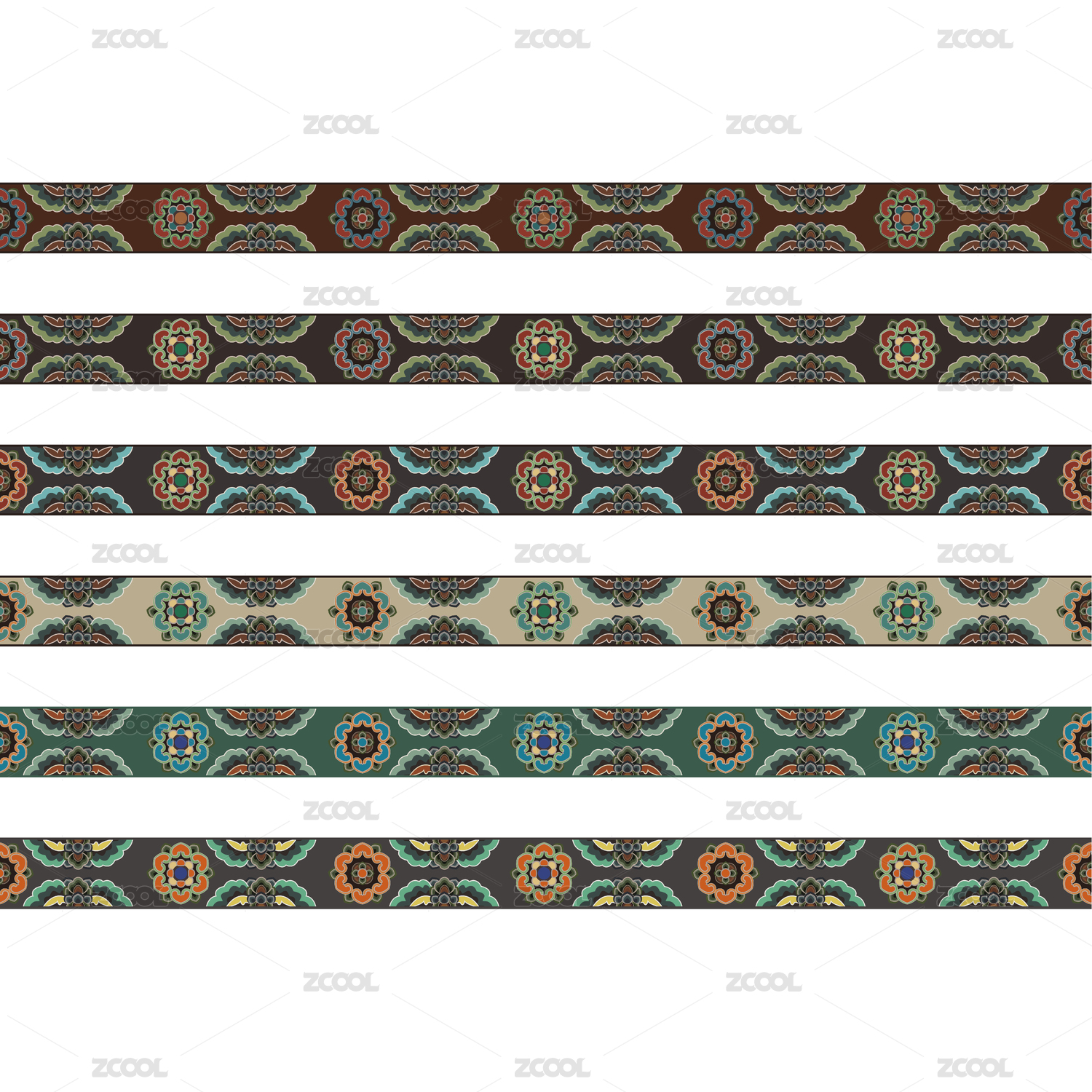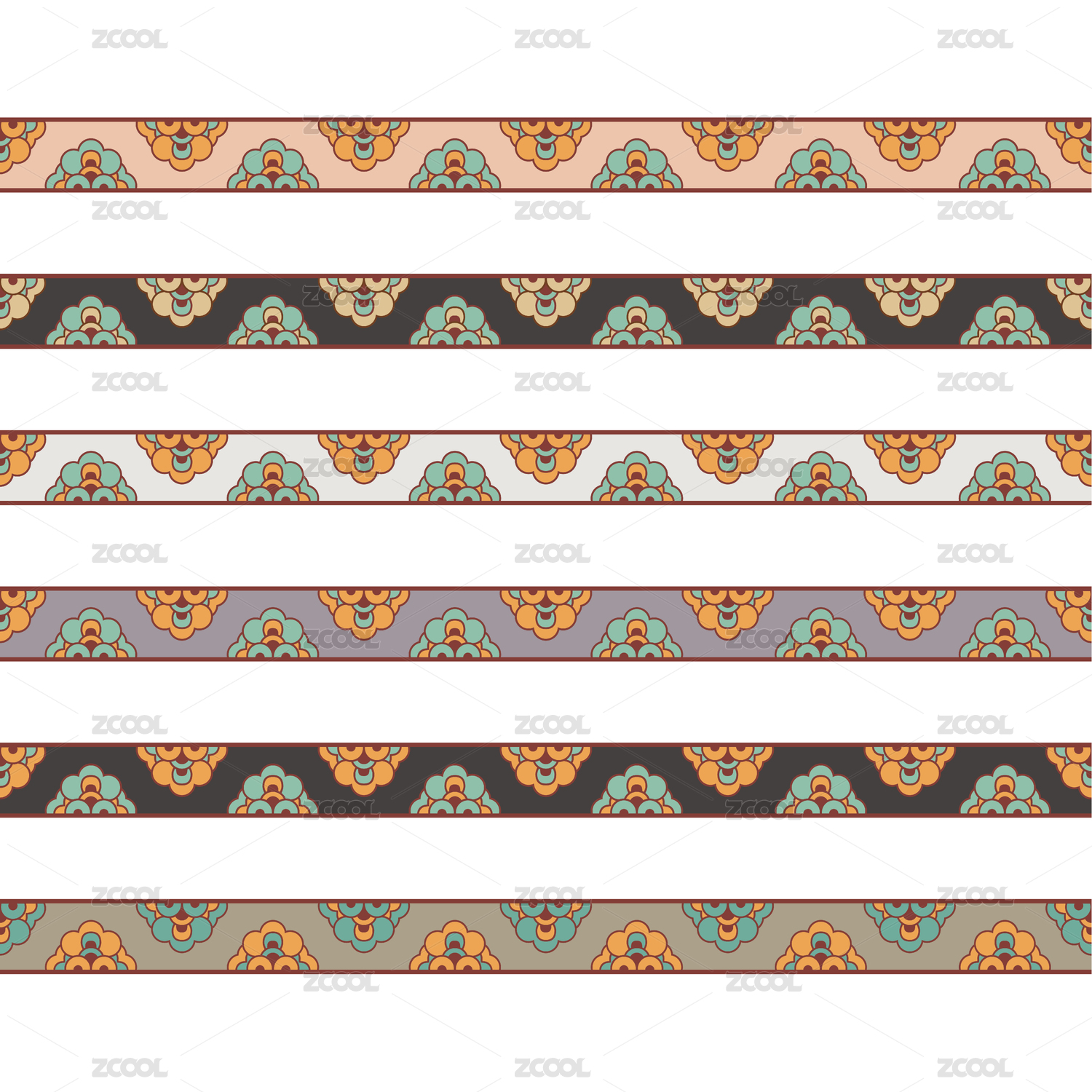 敦煌紋樣二方連續(xù)圖案無(wú)縫紋理圖貼紙