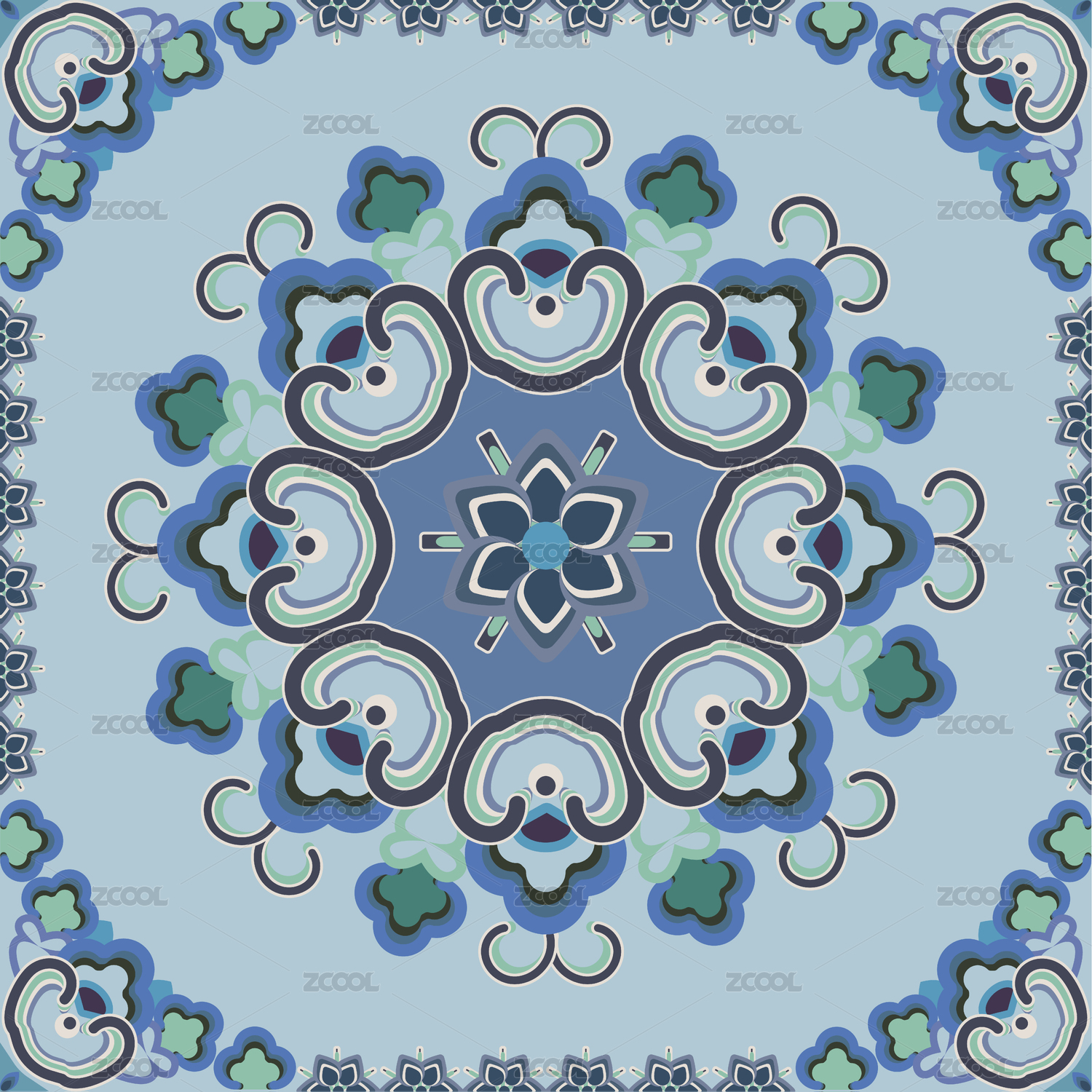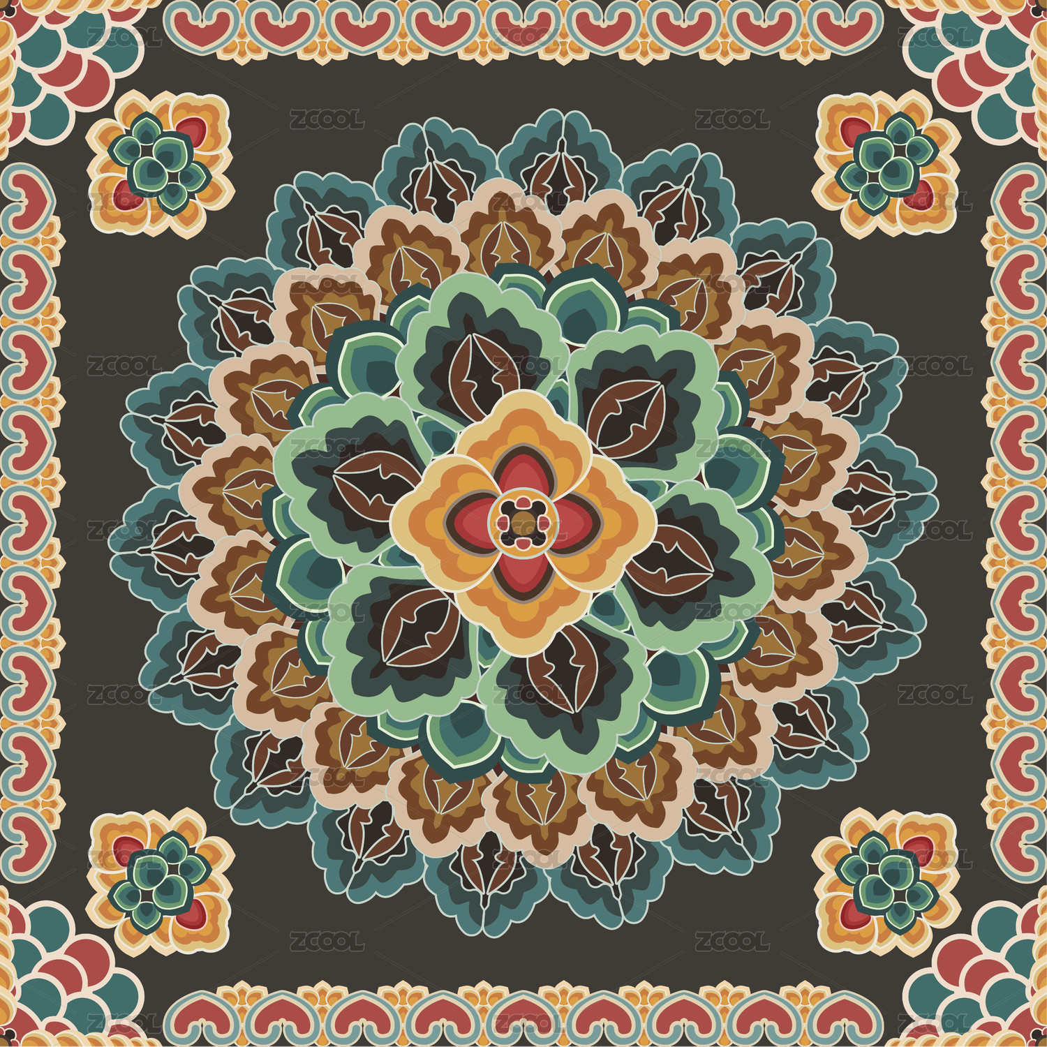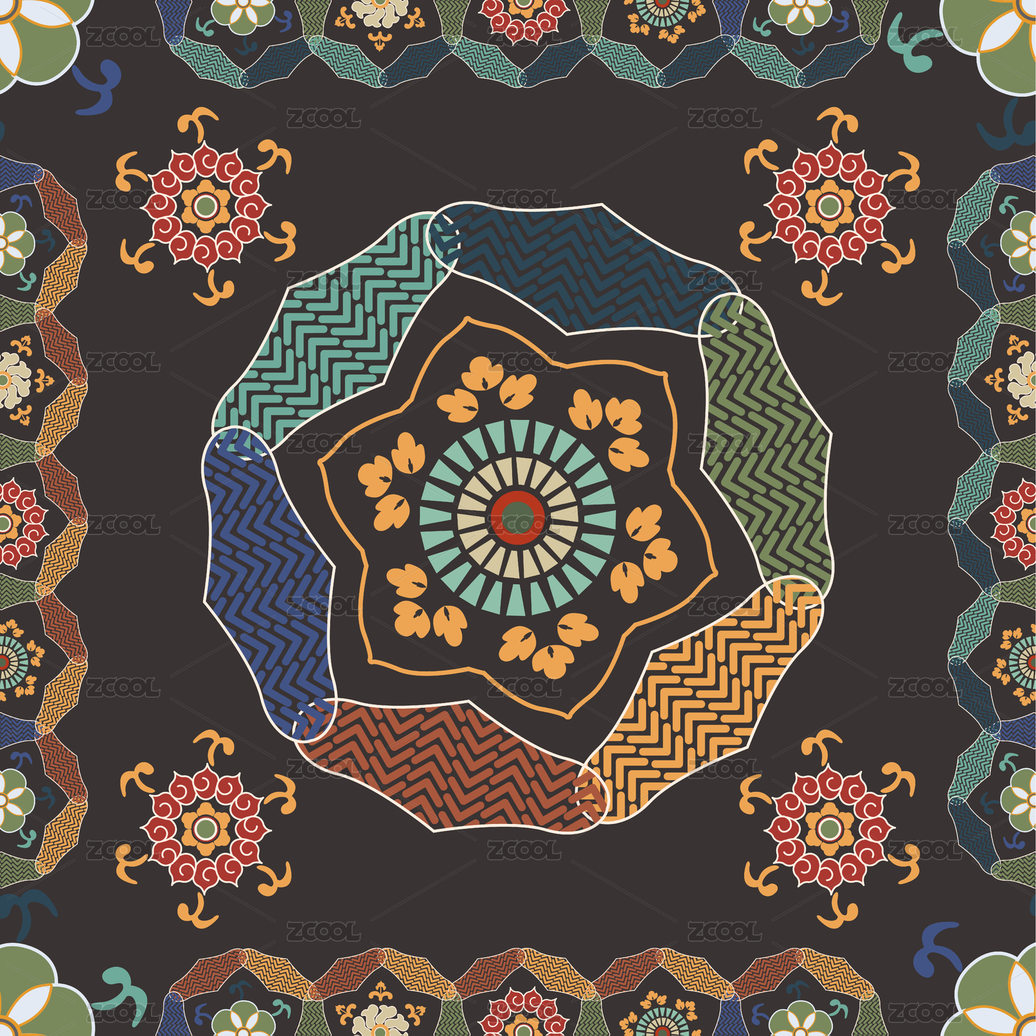 敦煌紋樣四方連續(xù)圖案無(wú)縫紋理圖手賬貼紙