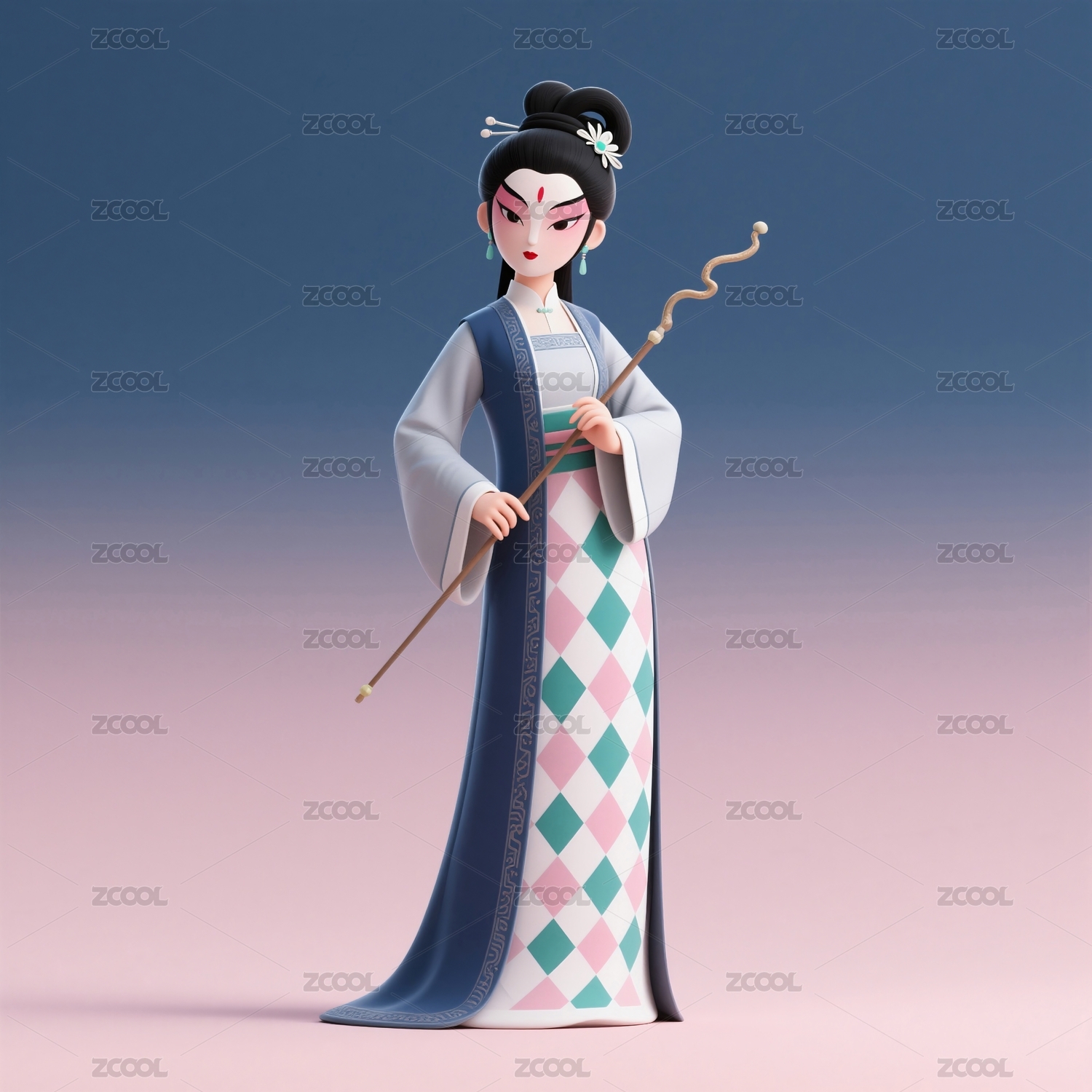 古風(fēng)女子手持權(quán)杖站立