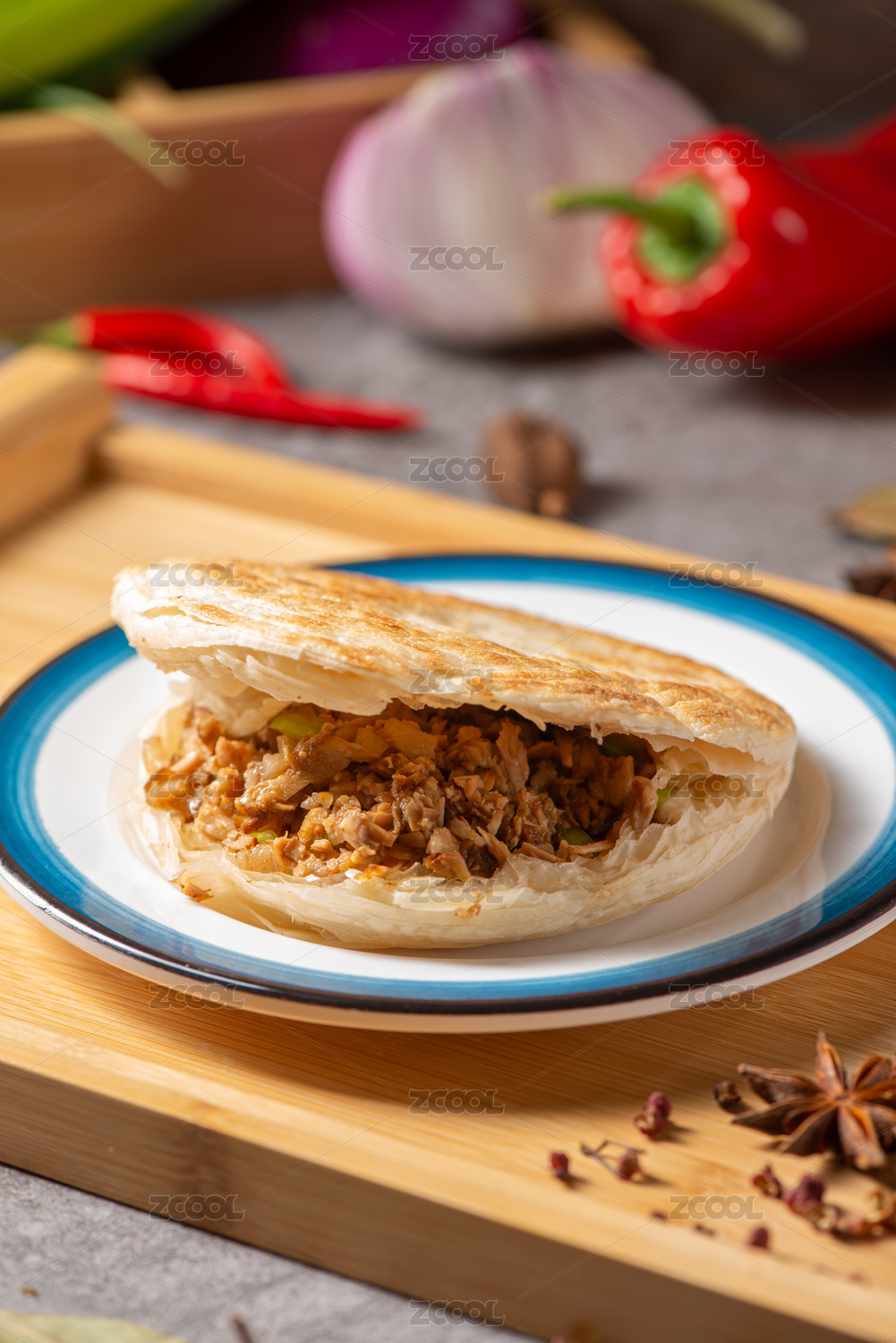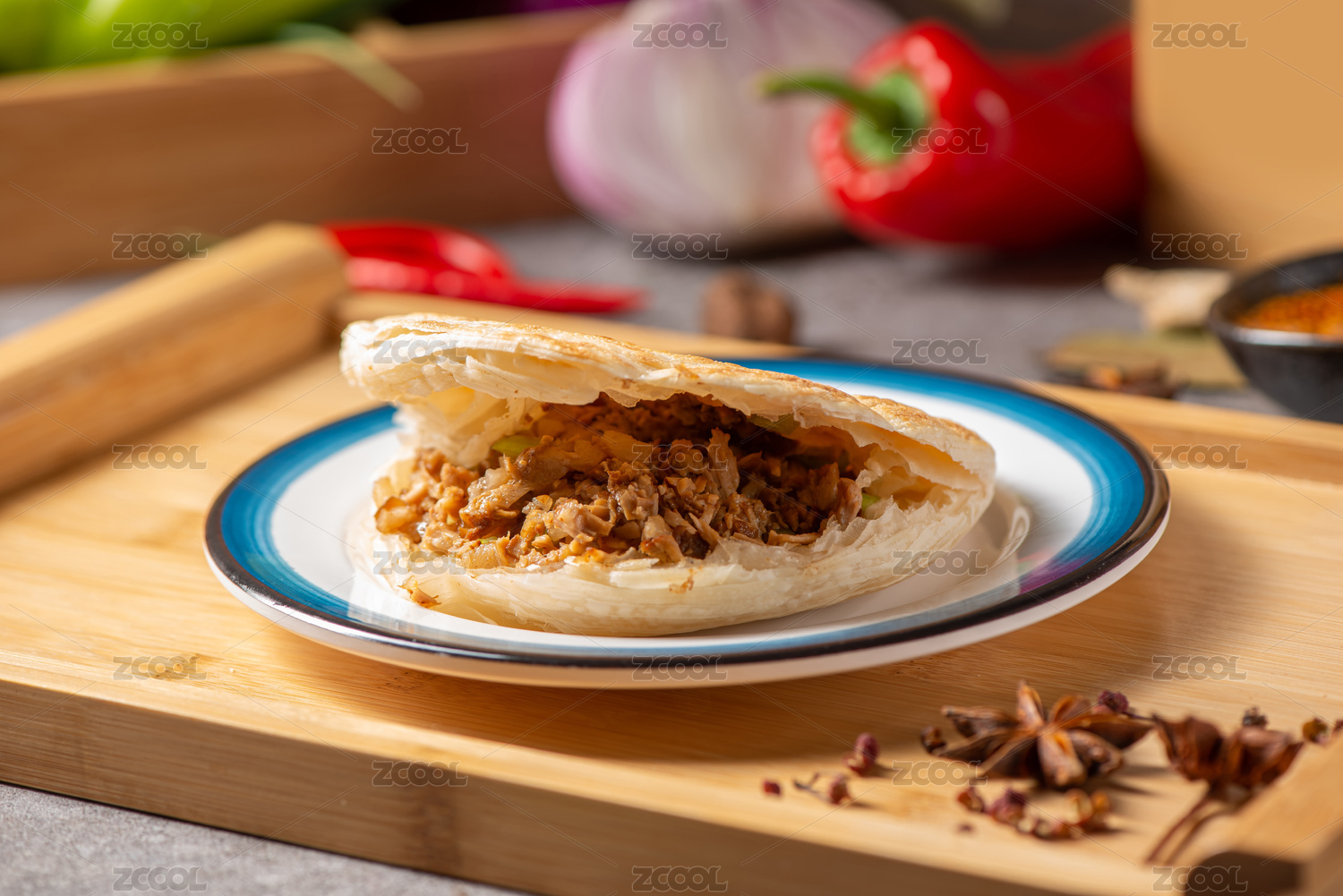 大理石背景上的陜西潼關(guān)肉夾饃餅子