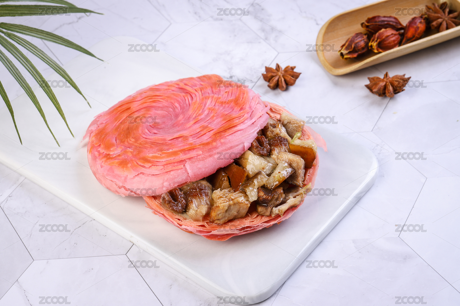 大理石背景上的彩色陜西潼關(guān)肉夾饃