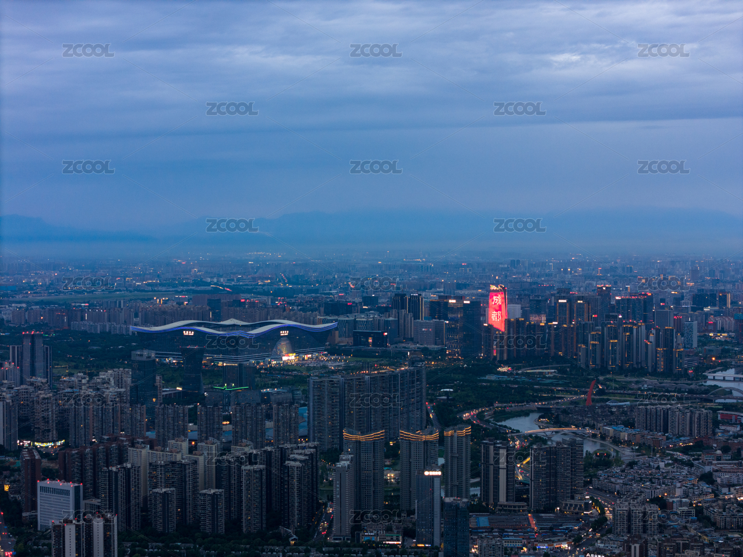 中國四川省成都市高新區(qū)交子公園金融城夜景航拍