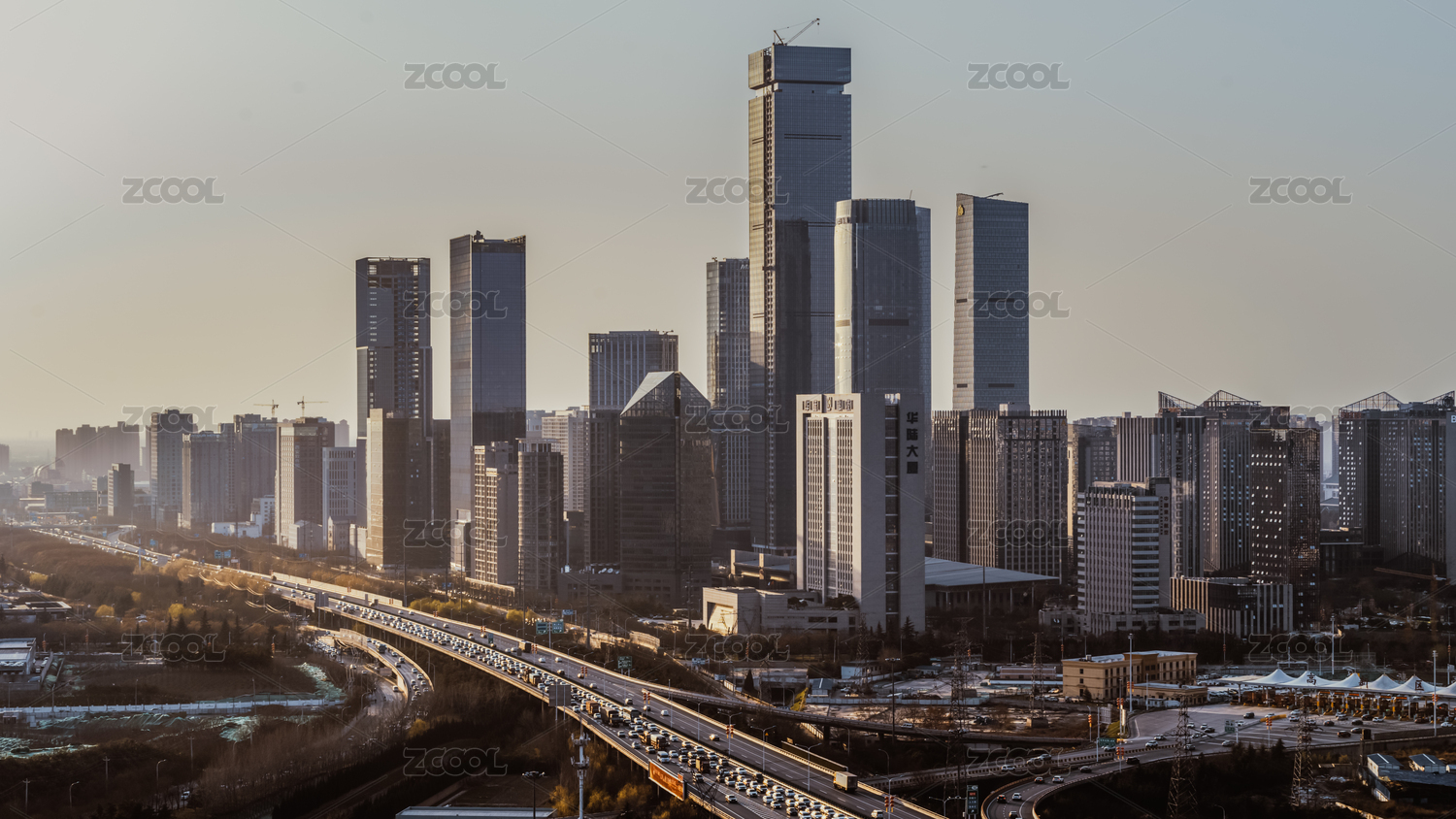 中國陜西省西安市高新區(qū)CBD商業(yè)中心航拍城市風(fēng)光