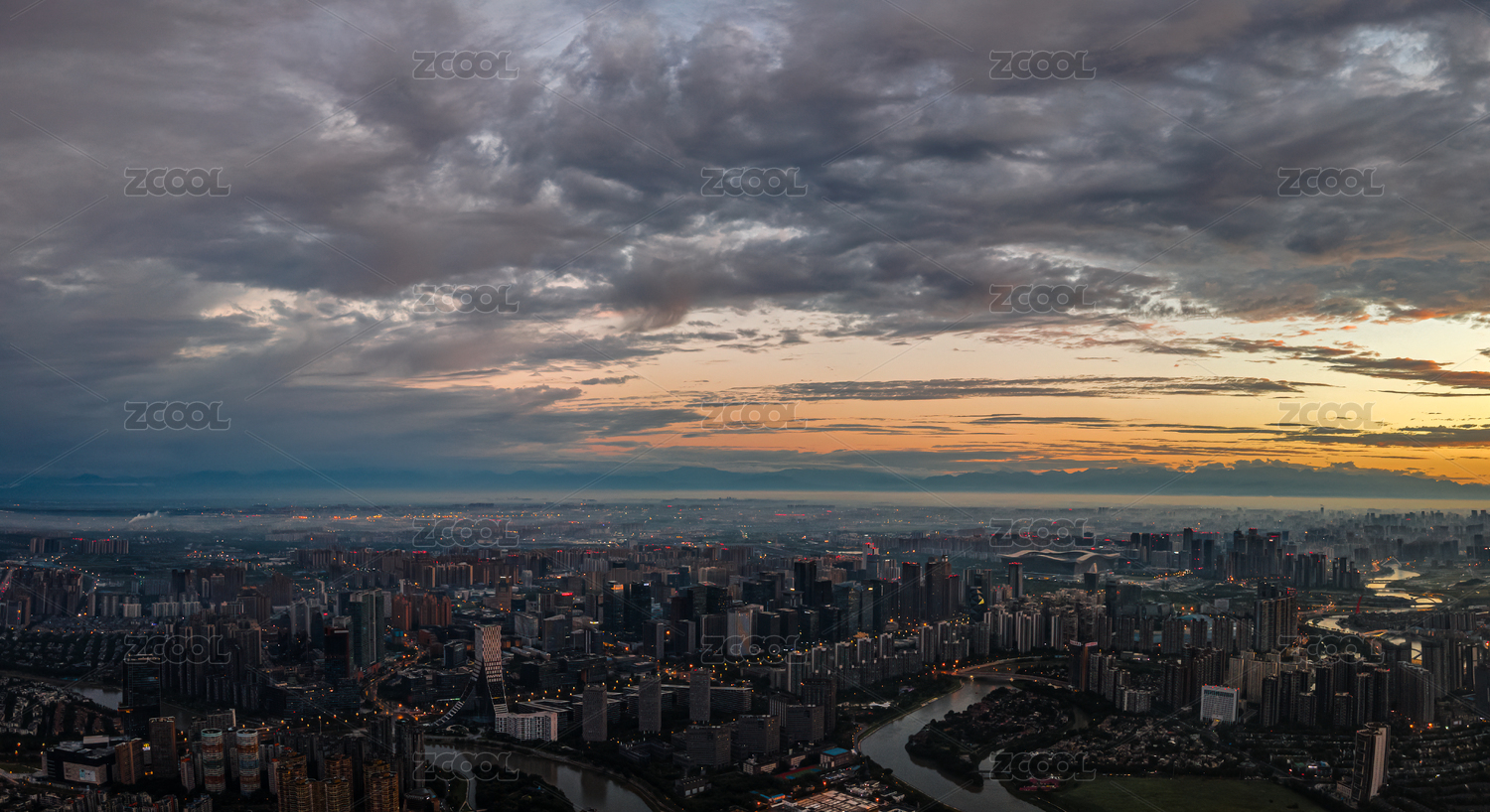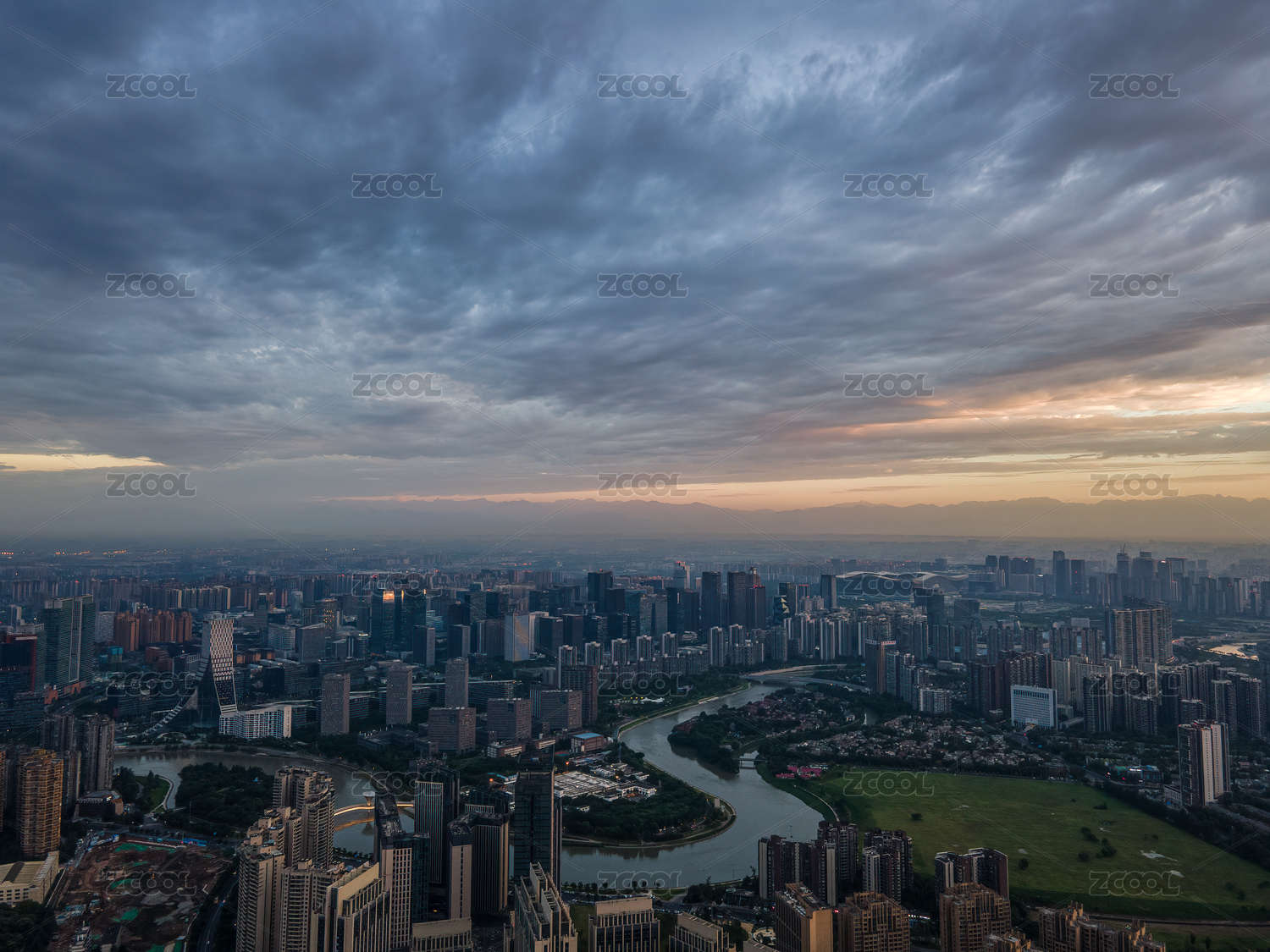 成都高新區(qū)桂龍大橋黎明日出航拍