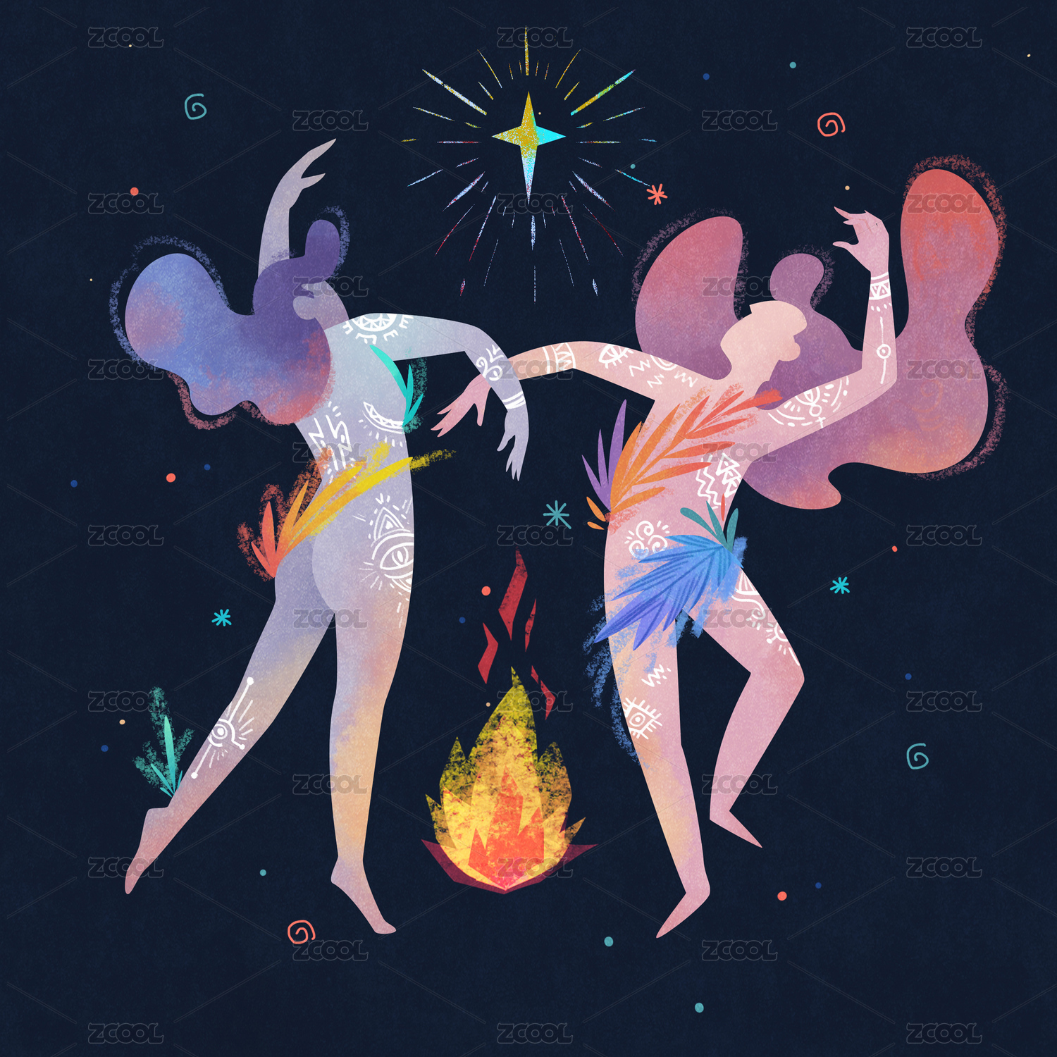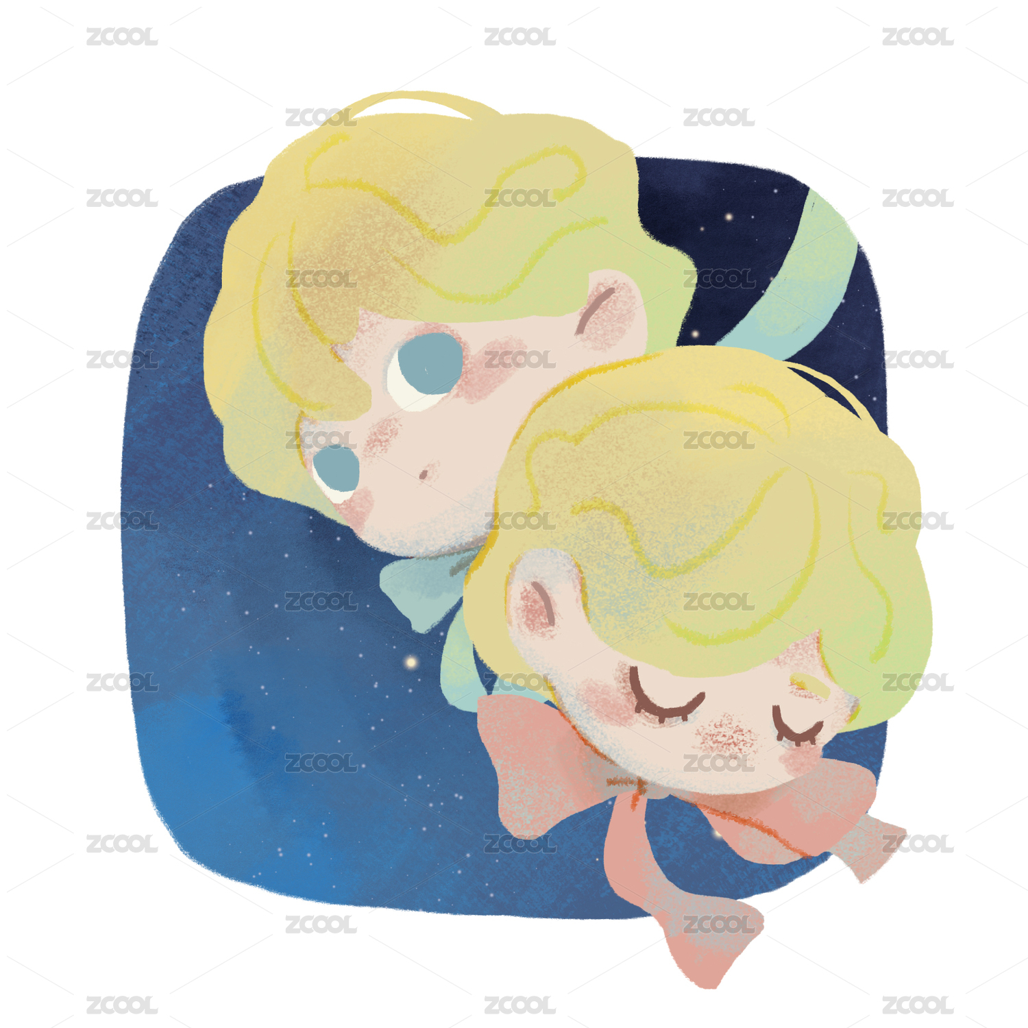 水彩雙子座插圖插畫(huà)藝術(shù)設(shè)計(jì)