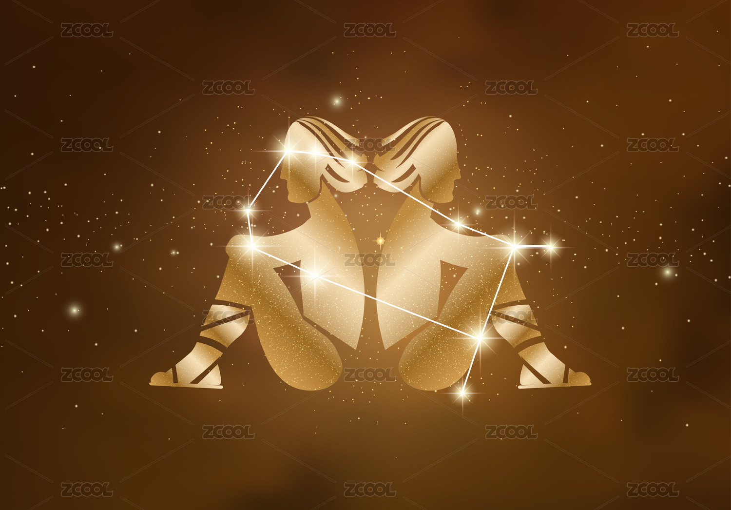 雙子座 雙胞胎 天使 天文星座 矢量背景