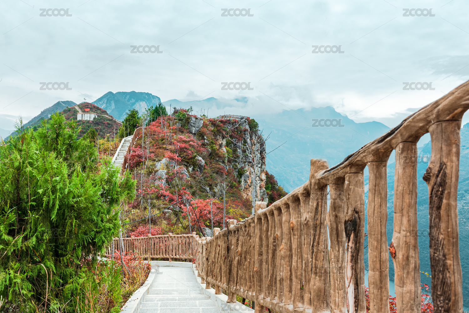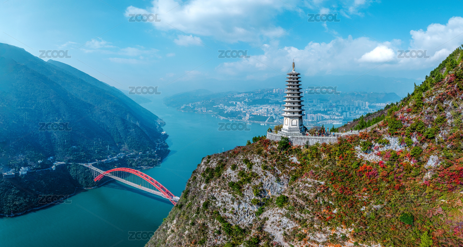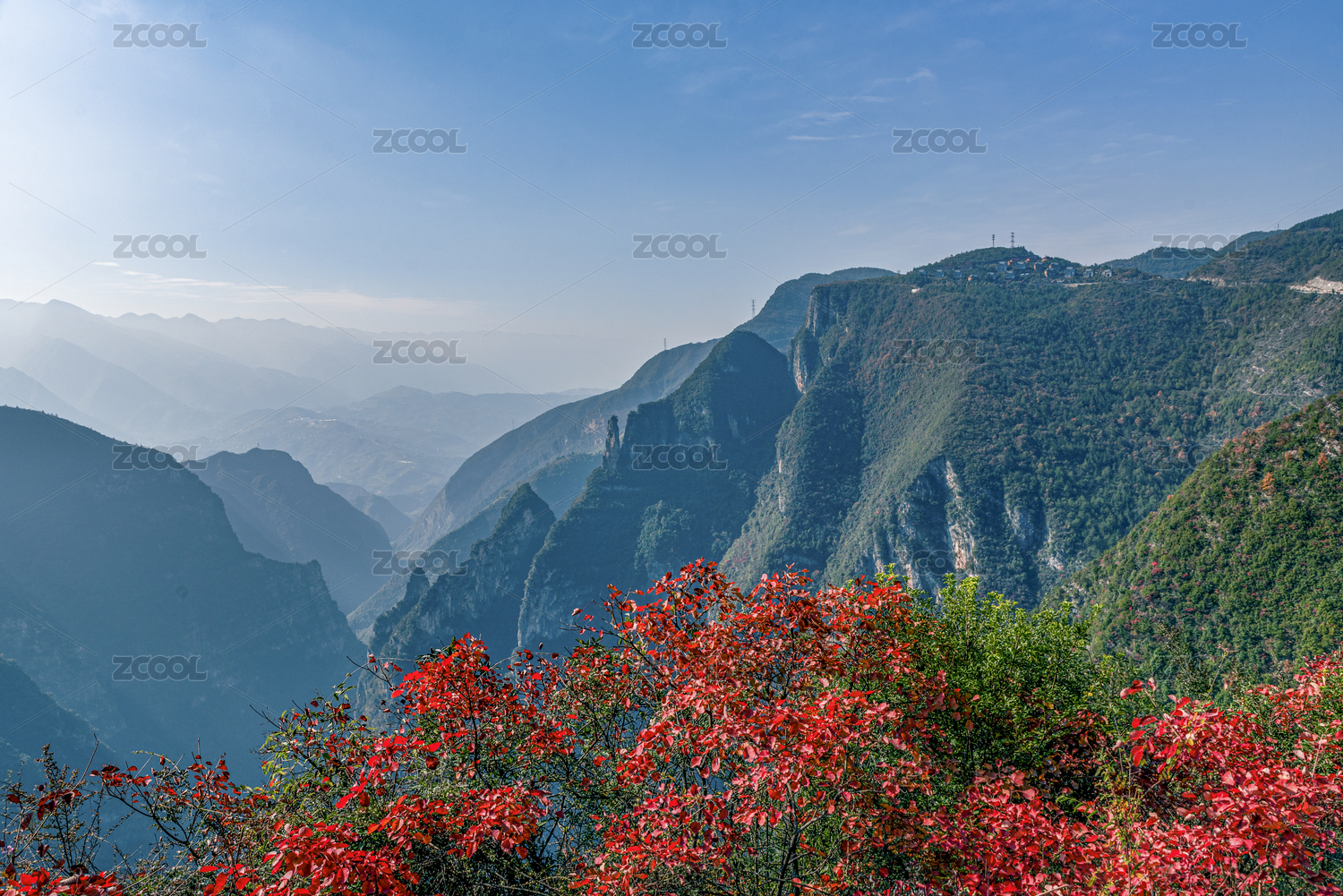 紅葉季節(jié)中國(guó)重慶巫山巫峽文峰山頂?shù)牟降?/div>