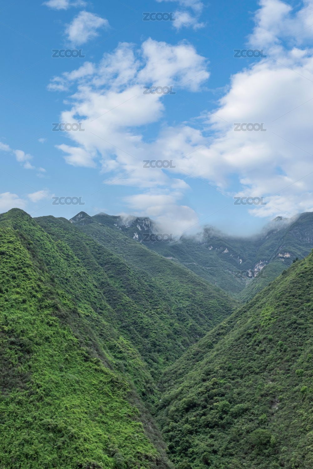 重慶巫山縣長(zhǎng)江巫峽青山藍(lán)天秀麗山景
