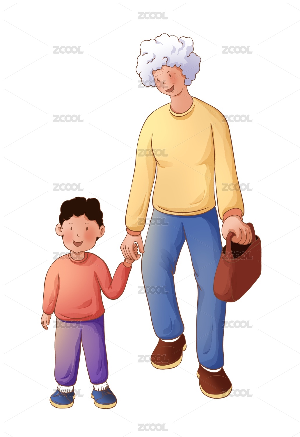 奶奶帶孫子插畫