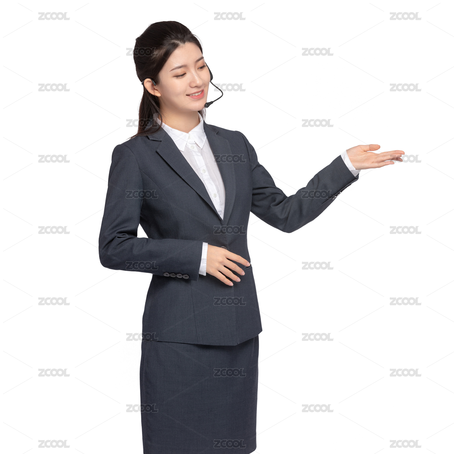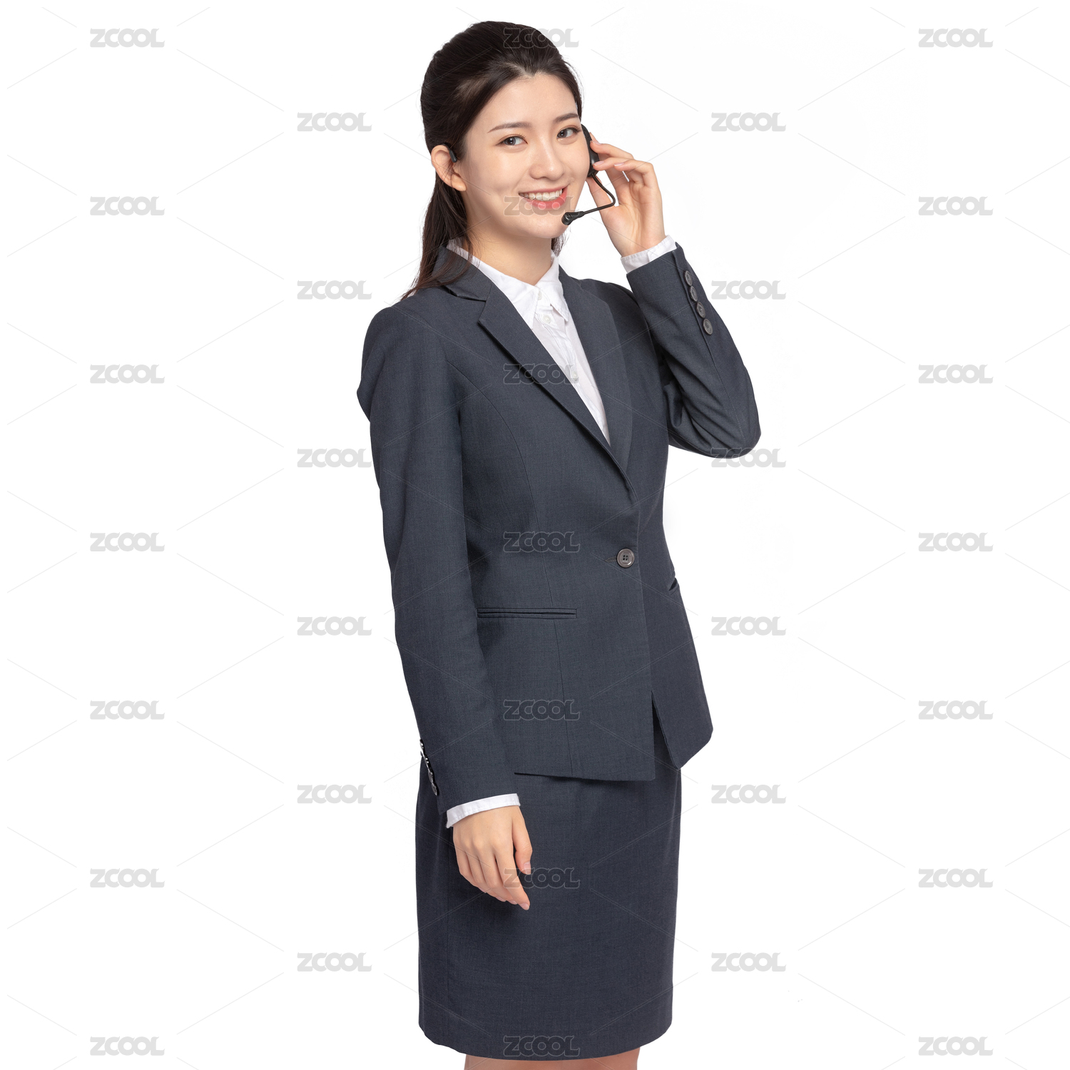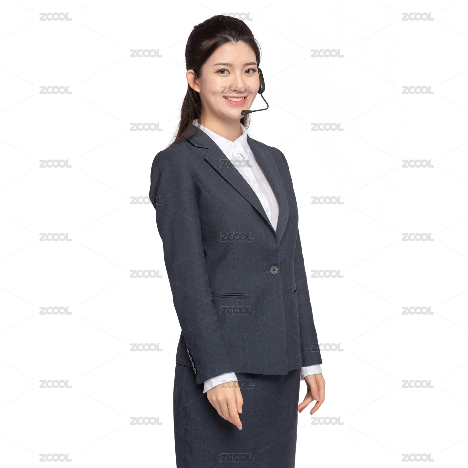 白色背景里,身穿西服帶著耳麥的美麗客服