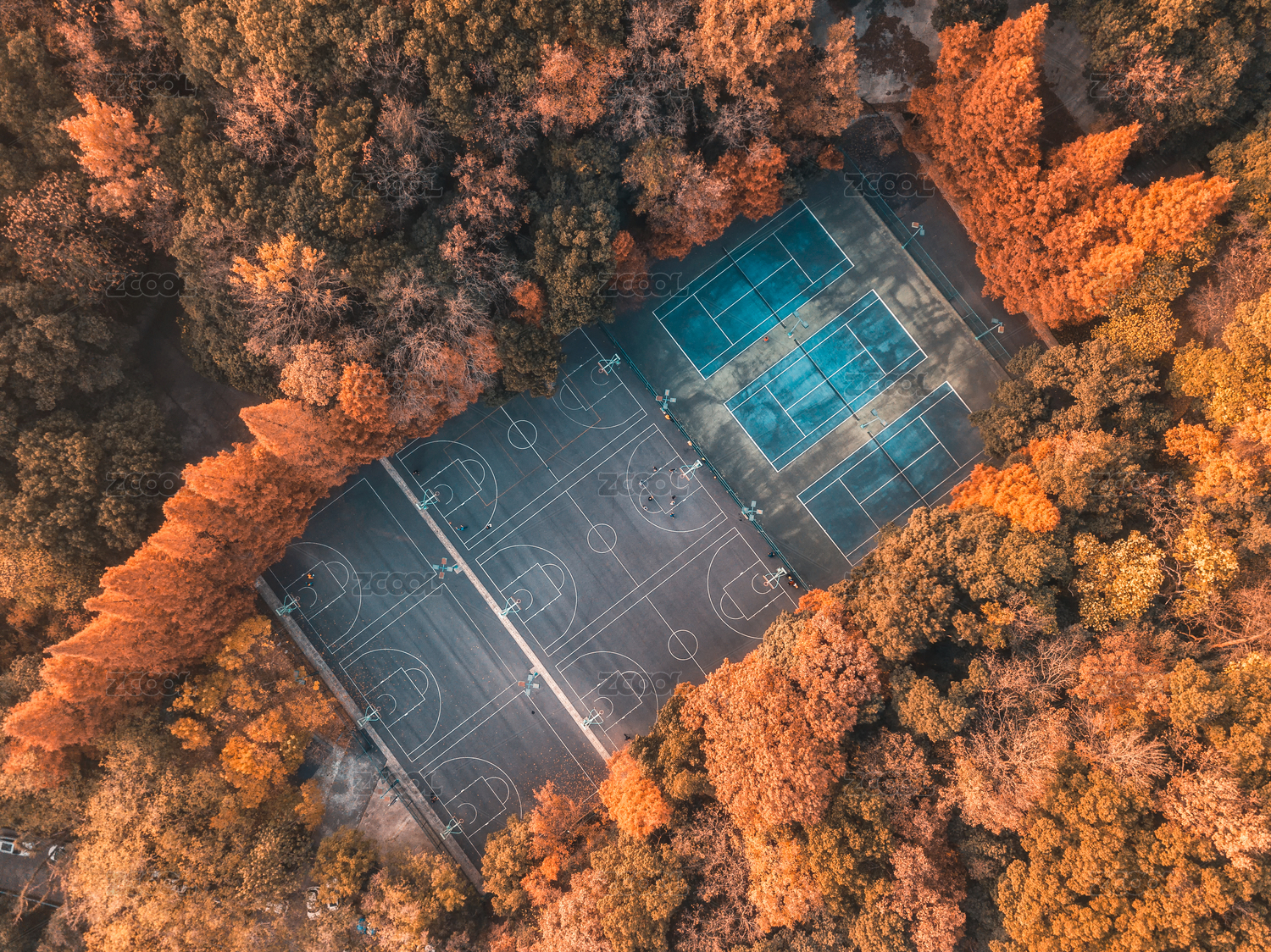 中國(guó)浙江杭州浙大之江校區(qū)球場(chǎng)秋景航拍