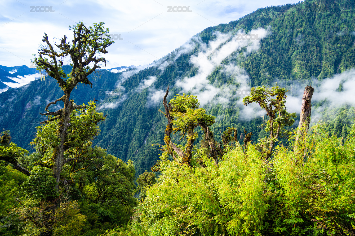 中國云南省獨龍江秋干洛神樹樁自然景觀