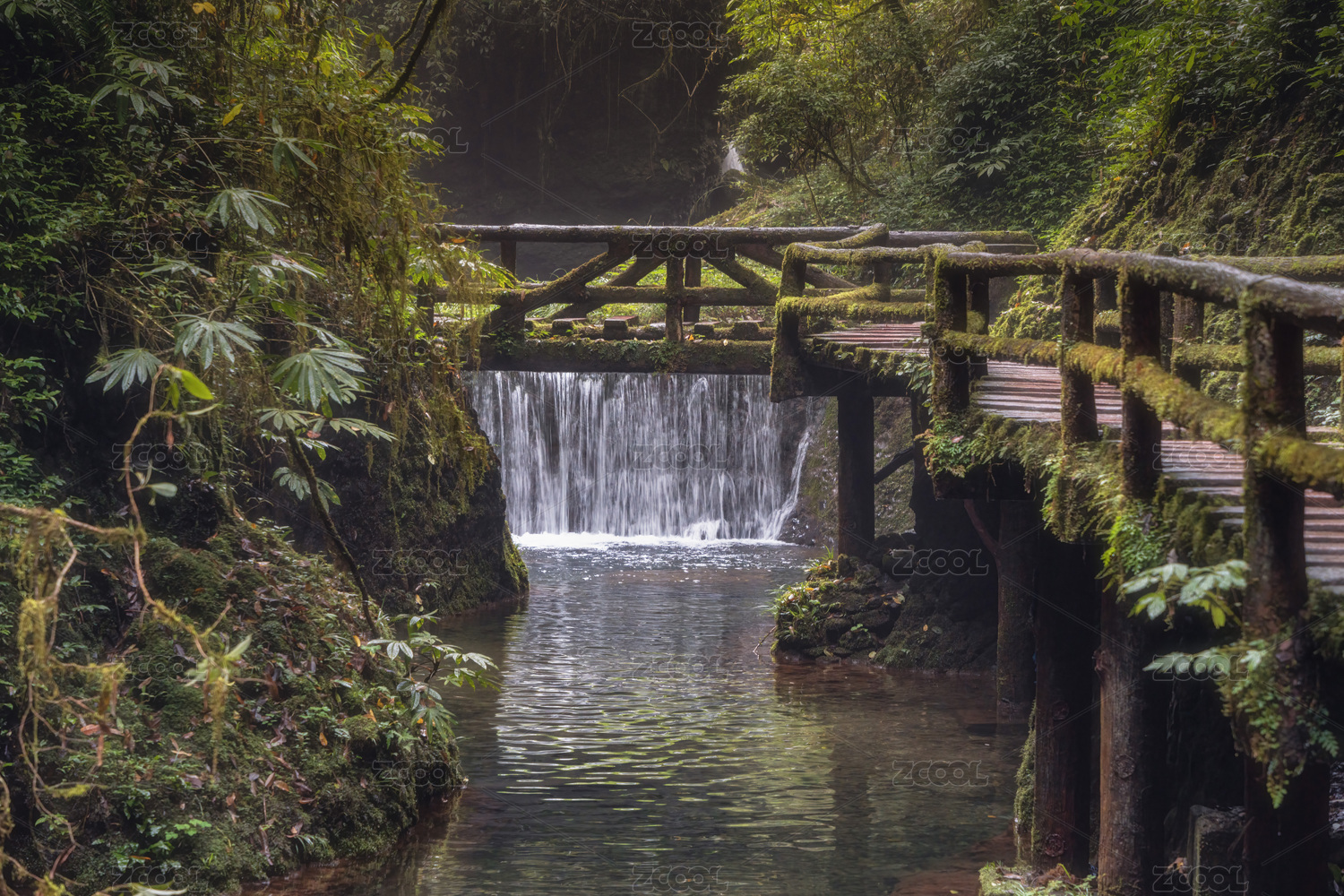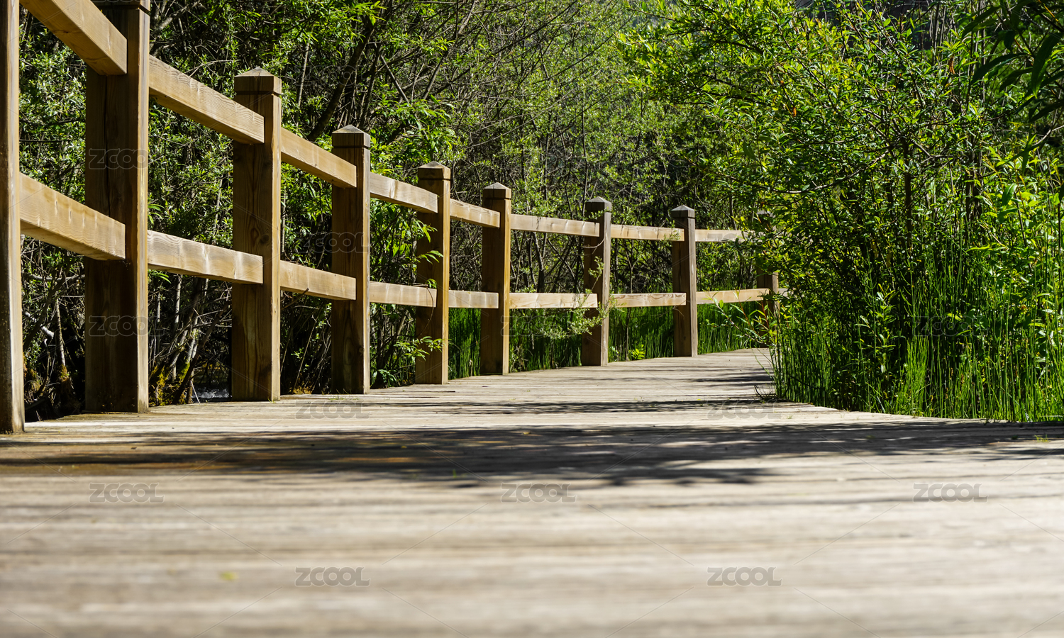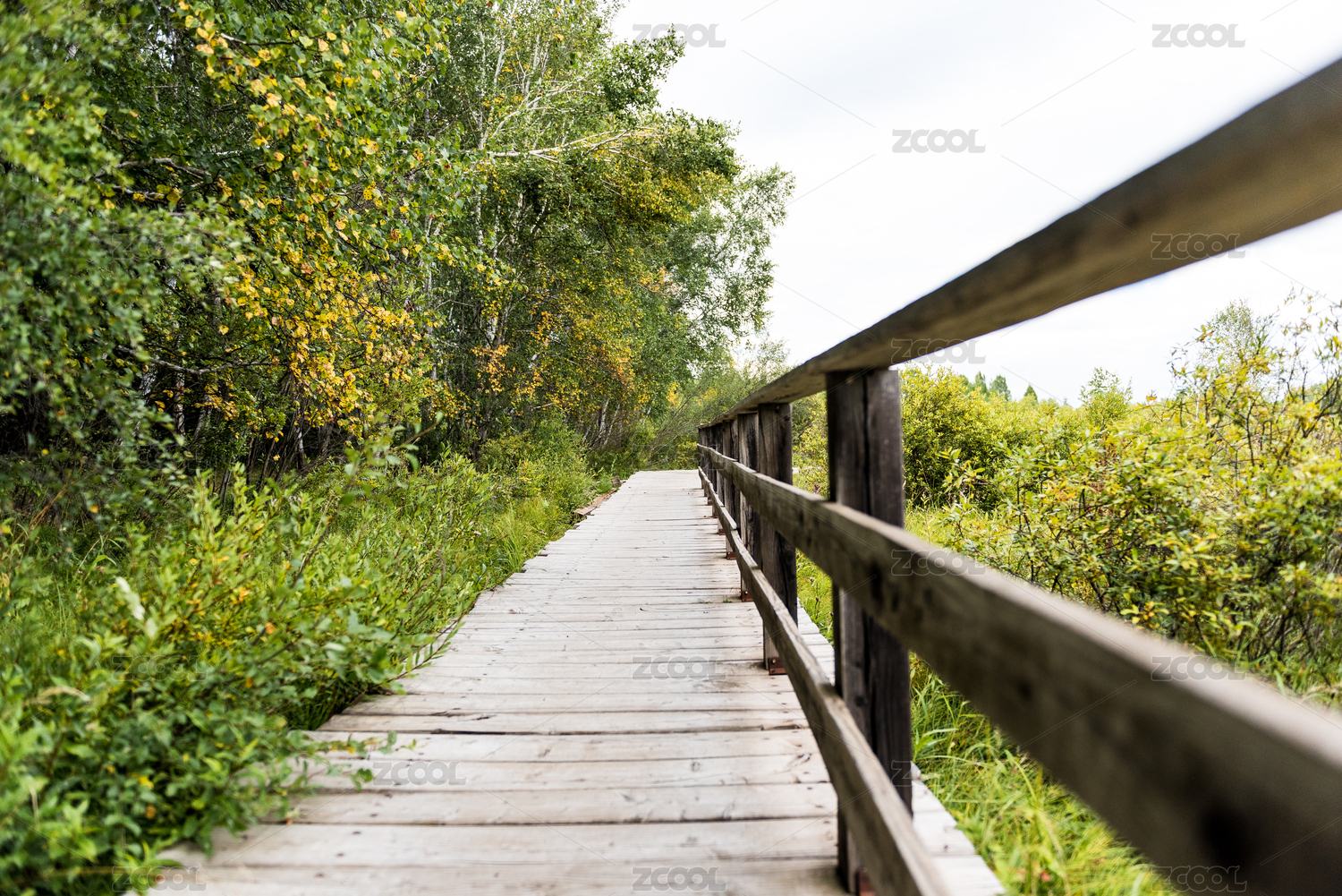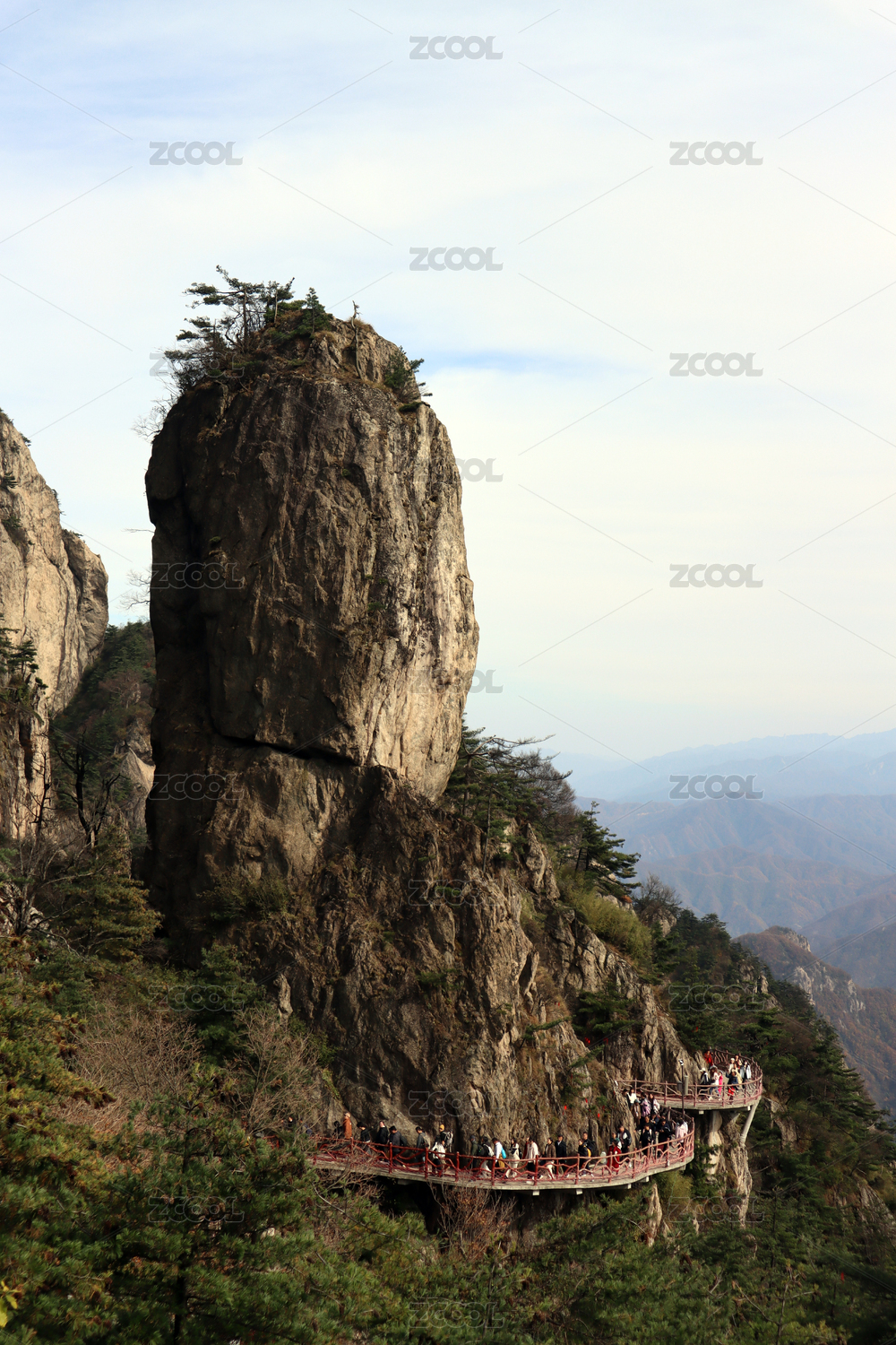濟(jì)南市九如山紅葉谷懸崖上木制的棧道步行道