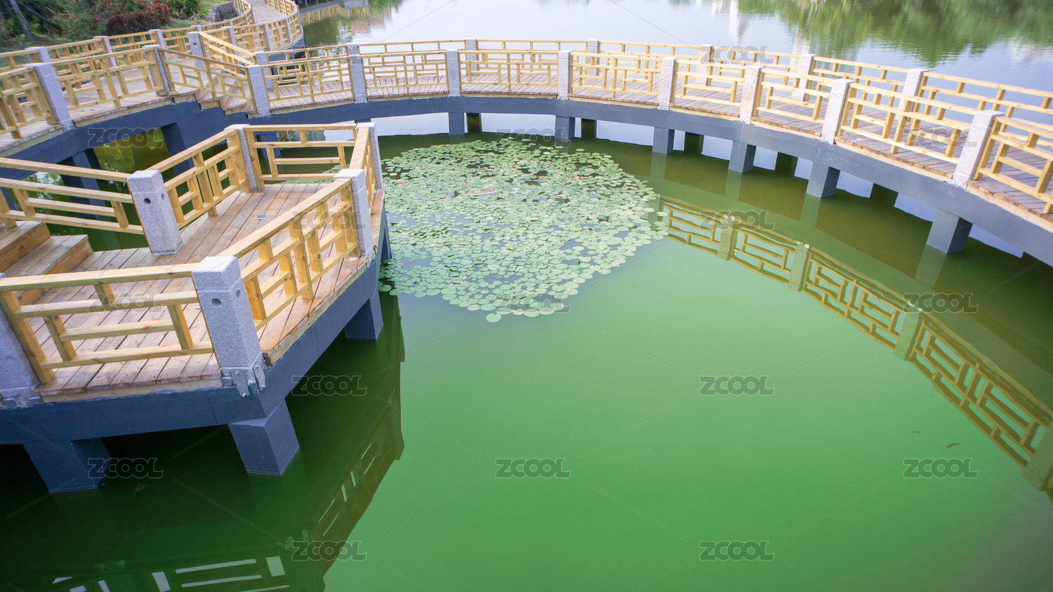 中國浙江金華義烏湖畔棧道風(fēng)光
