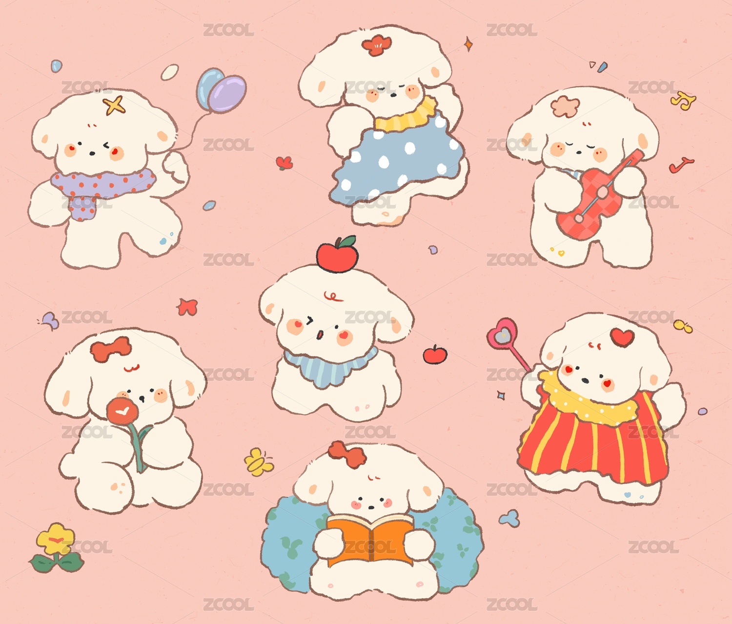 原創(chuàng)圖案設計/三色治愈系小狗插畫