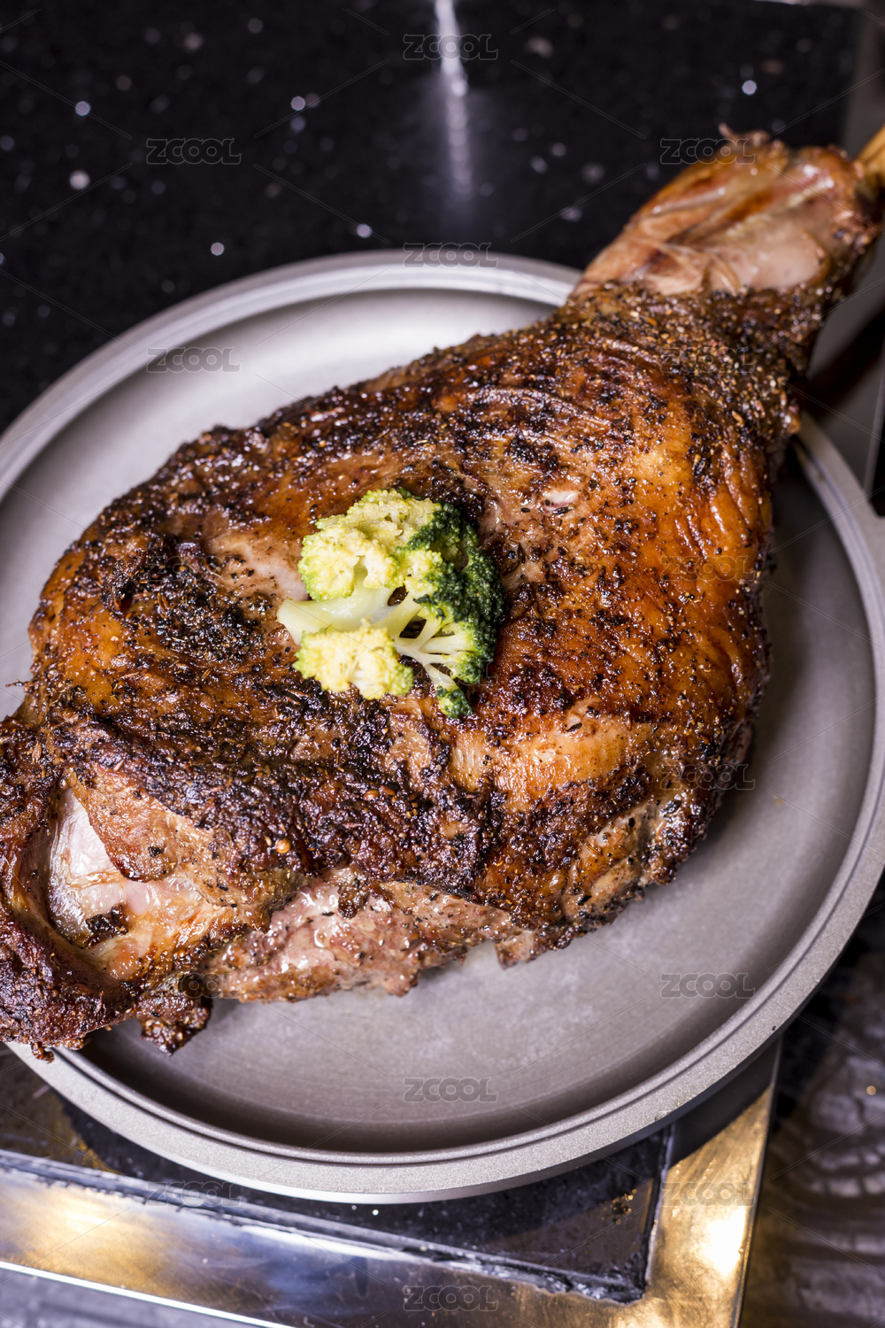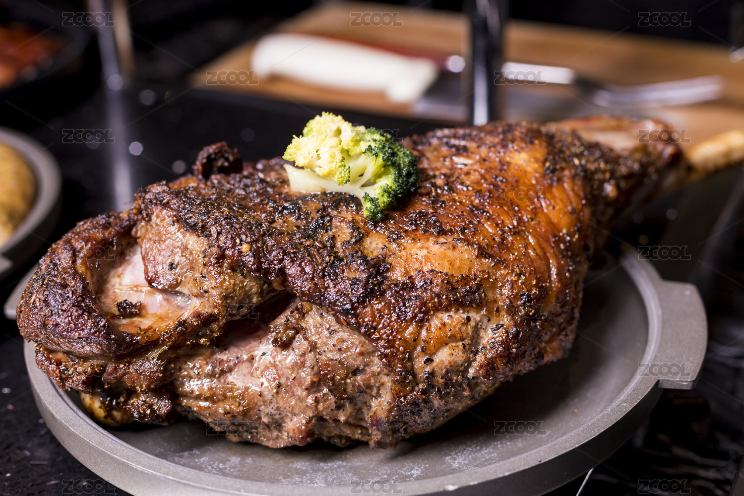 自助餐盤中的熟食羊腿