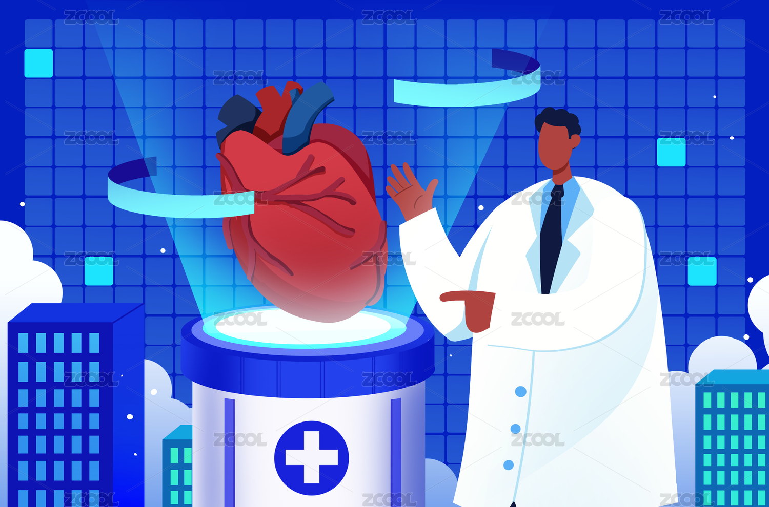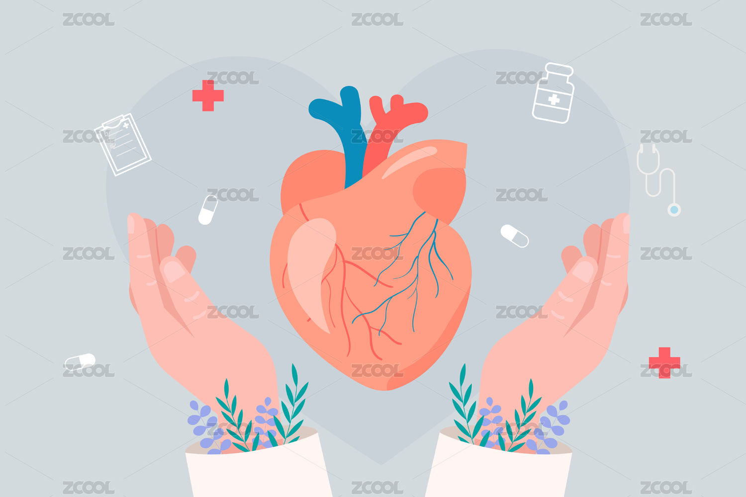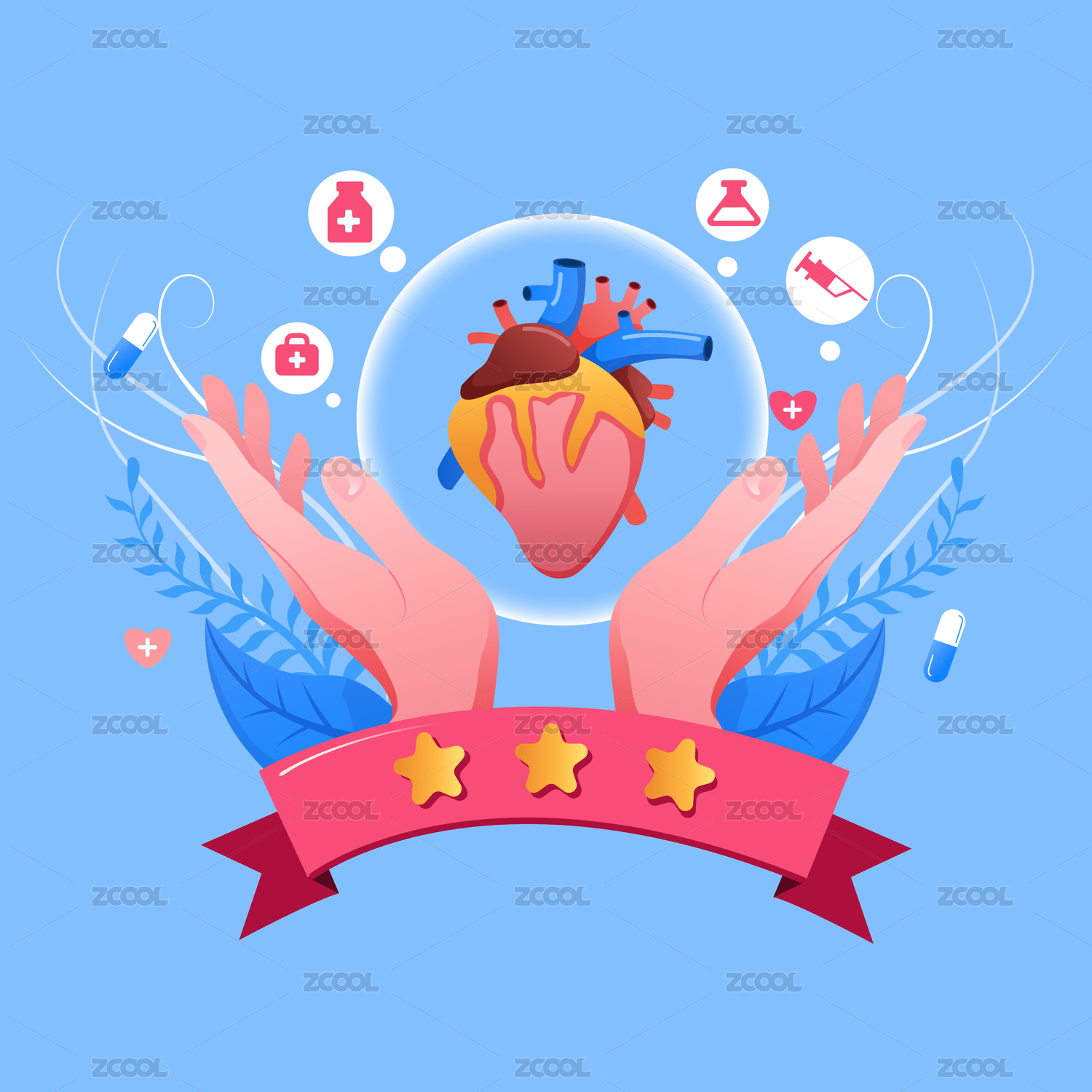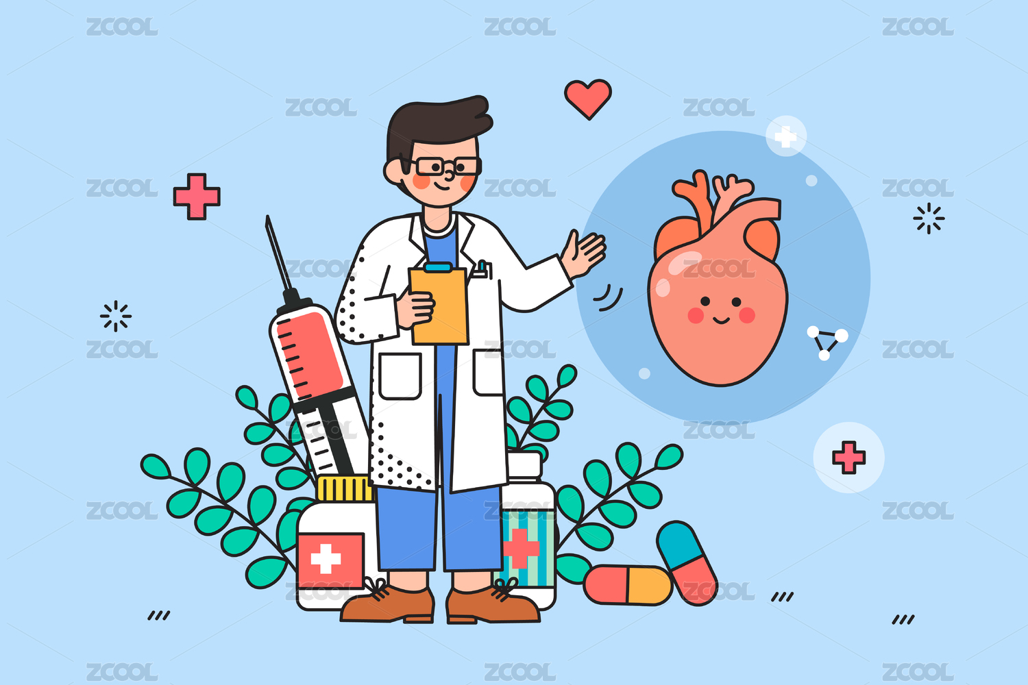 卡通手繪心臟病心肌梗塞醫(yī)療護(hù)理插畫