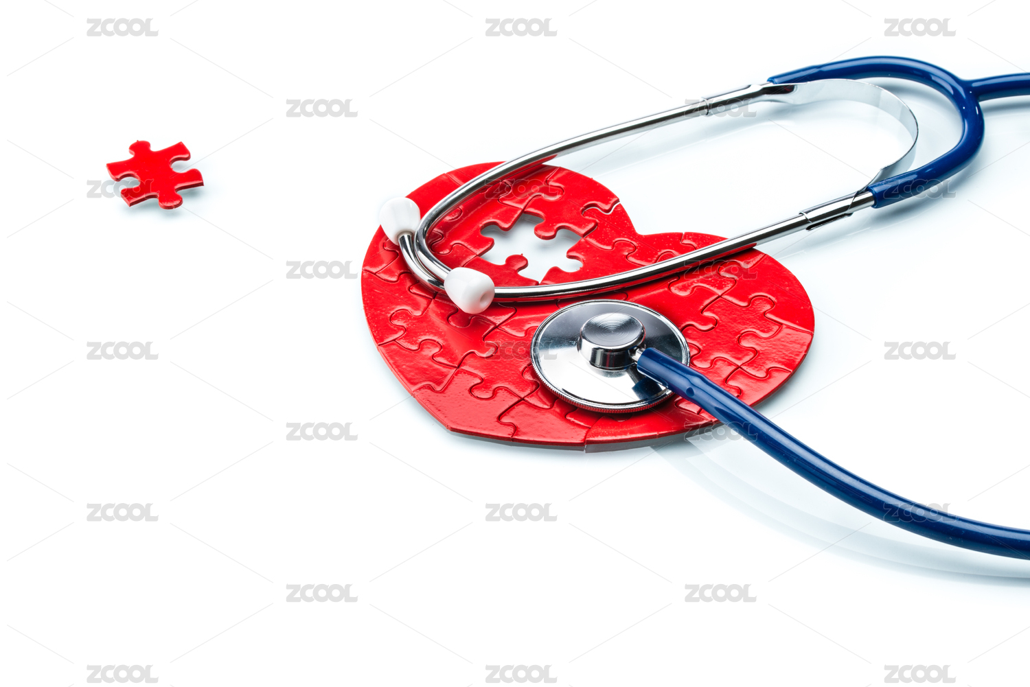 心臟疾病,心臟拼圖白色背景上的聽診器