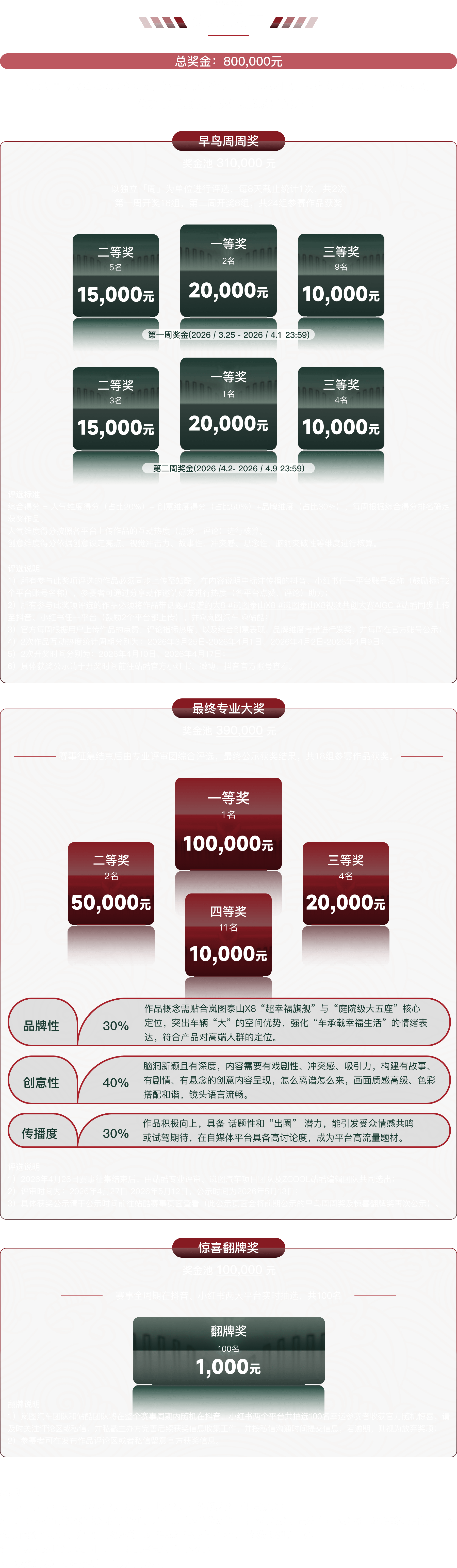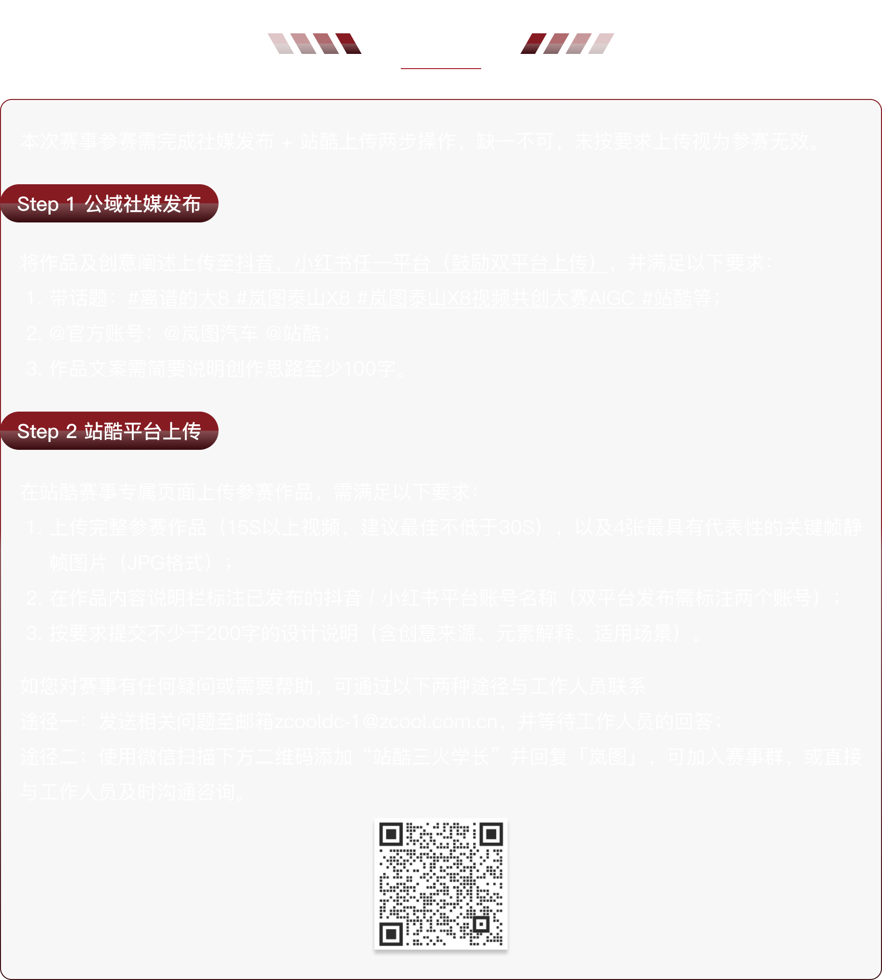 1、資格審核:主辦方有權(quán)對參賽作品進(jìn)行原創(chuàng)性及合規(guī)性審查(包括但不限于人工審核與技術(shù)檢測)。對于存在違規(guī)情形的作品,主辦方有權(quán)采取刪除作品、取消參賽資格、撤銷已獲獎項等措施。參賽者須無條件尊重并接受主辦方的最終判定結(jié)果。