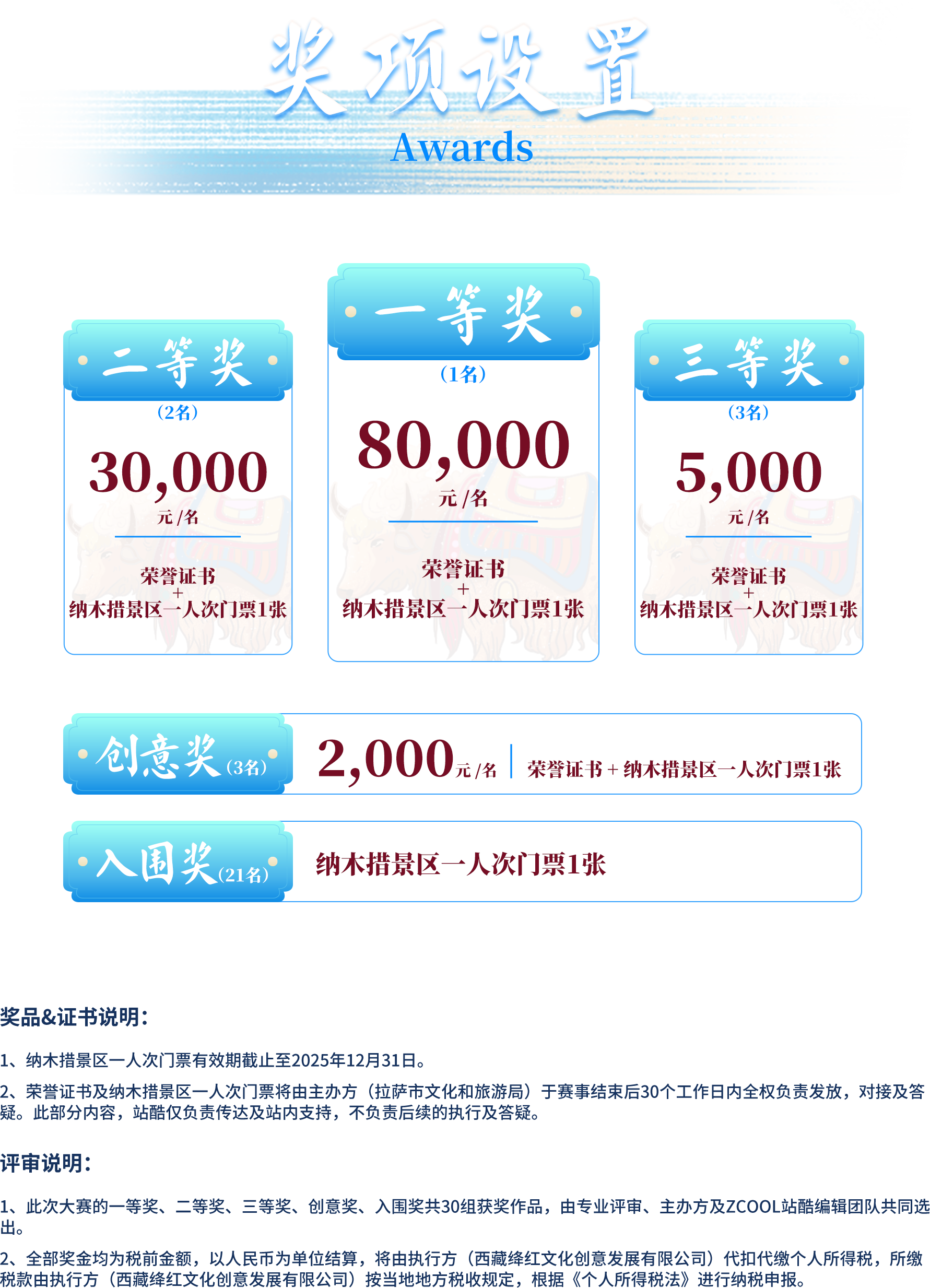 4、執(zhí)行方(西藏絳紅文化創(chuàng)意發(fā)展有限公司)將在比賽結(jié)束后安排獎金發(fā)放事宜,所有獎金以人民幣為單位結(jié)算,均為稅前金額,由執(zhí)行方(西藏絳紅文化創(chuàng)意發(fā)展有限公司)代扣代繳。
