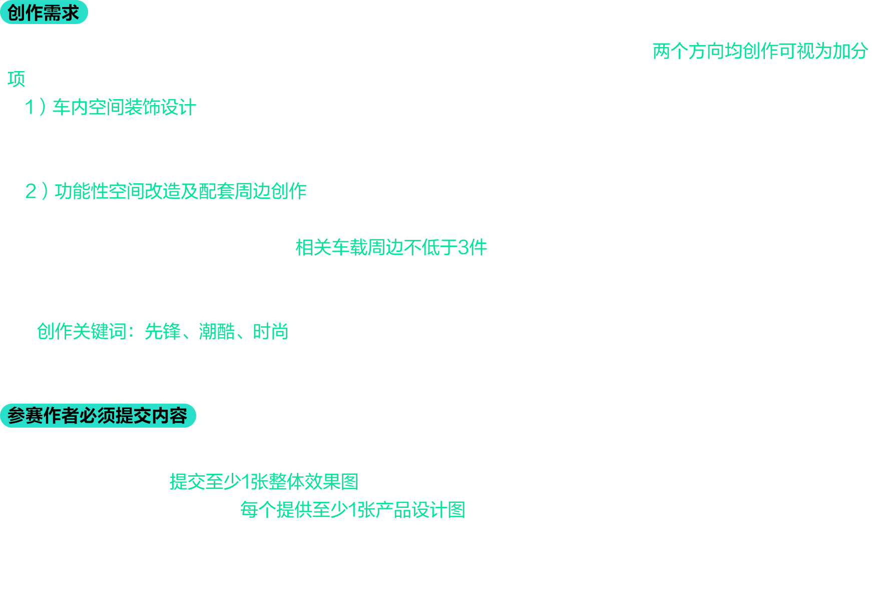 7、主辦方如需對賽道二(智界座艙空間改造)四等獎/未來潛力獎(10組)的參賽作品進行開發(fā)、生產(chǎn)、銷售等商業(yè)用途,需取得參賽作者書面許可,并向參賽作者支付相應設計費用。