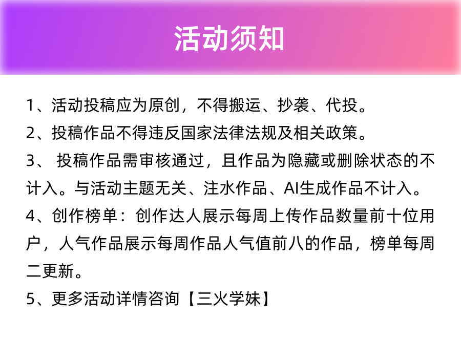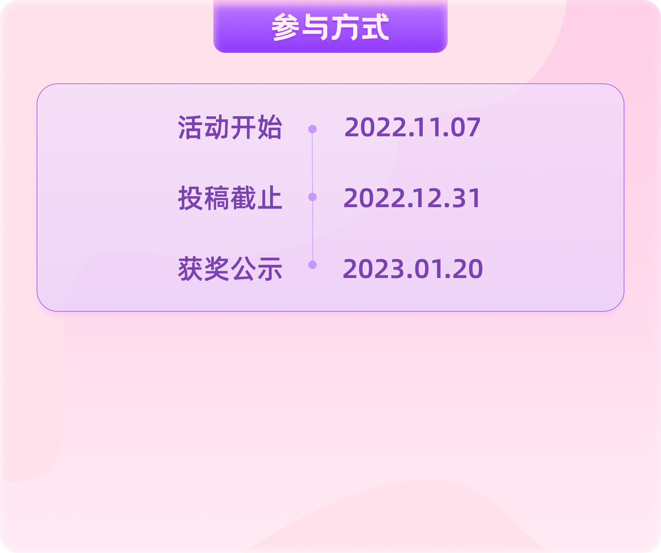 2022年11月7日--2022年12月31日點擊 “立即投稿” 發(fā)布作品即可參與活動。